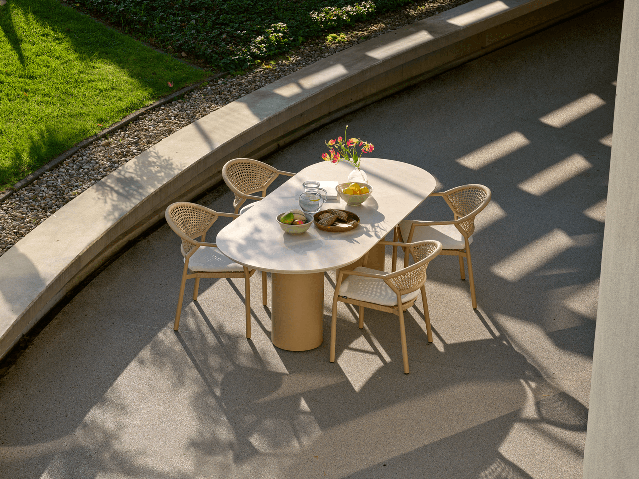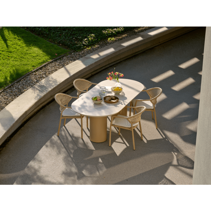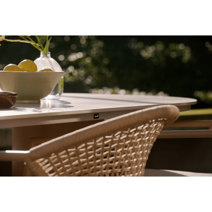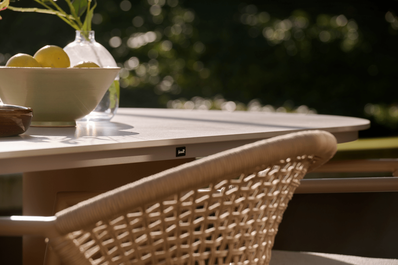 - Zahradní židle Taragona má unikátní povrchovou úpravu díky pletenému umělému lanu, které se tvoří mezi hliníkovým rámem. Kulatý hliníkový rám dodává židli pevnost a moderní nádech. Světle béžové polštáře vám poskytnou optimální pohodlí při sezení a dokonale se hodí k nejnovějším zahradním trendům, kde je béžová barevná paleta často k vidění.