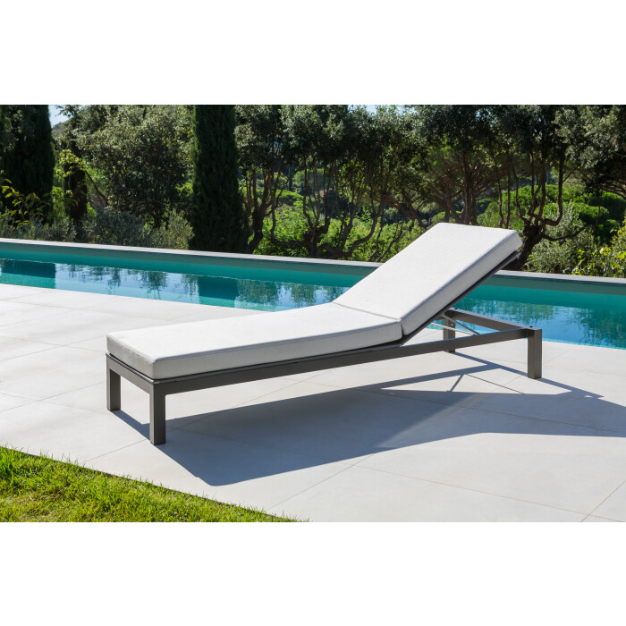 Elegantní polohovatelné lehátko kolekce Leuven vás okouzlí svými čistými liniemi. Díky rychle schnoucí textílii Batyline® je vhodné na pláž stejně jako k bazénu. Nosná konstrukce z hliníku s nerezovými komponenty a integrovanými kolečky je pevná a elegantní zároveň.