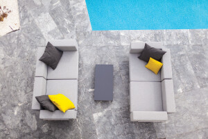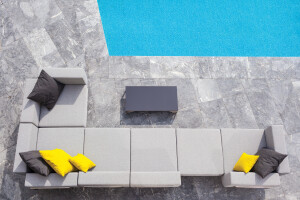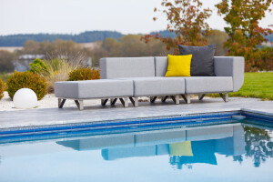 Modulární sedací sestava Lotos, kterou si můžete poskládat do libovolného tvaru. Tuto sedačku se nemusíte bát nechat celý rok venku - je vyrobena z patentované pěny DryFeel, která svou otevřenou strukturou buněk zaručuje rychlé vyschnutí. Potah je možné zvolit ze dvou materiálů - Crevin Vita a Kvadrat. Sedačka je dostupná v mnoha barevných variantách.