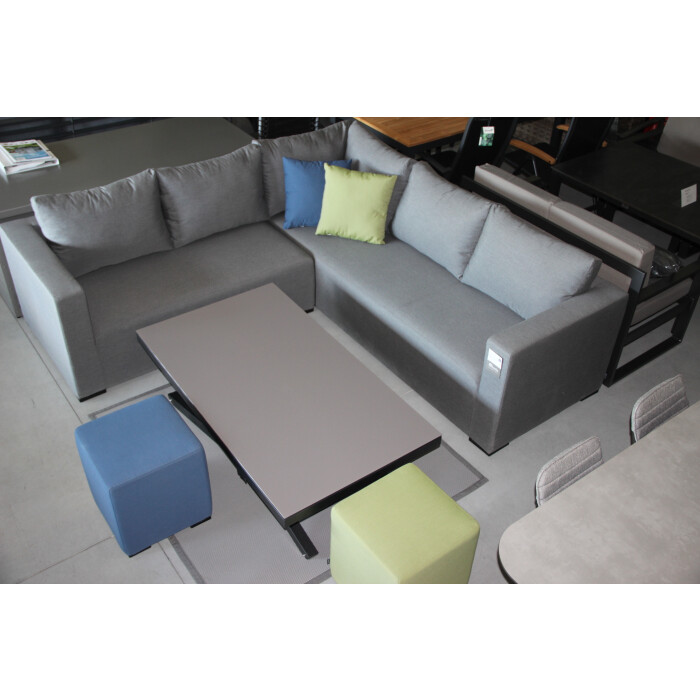 Zahradní moderní rohové sezení, láká k dokonalému odpočinku. Souprava se hodí do každého počasí a velmi snadno se čistí.