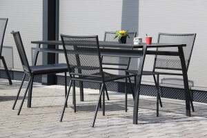 Kovový zahradní nábytek Praha je složen v kombinaci židlí z tahokovu a stolu z ocelové konstrukce s HPL deskou o síle 6 mm. Tato řada nábytku se vyznačuje moderním designem a praktičností. Použitý materiál je navíc velmi pevný a odolný vůči povětrnostním vlivům.