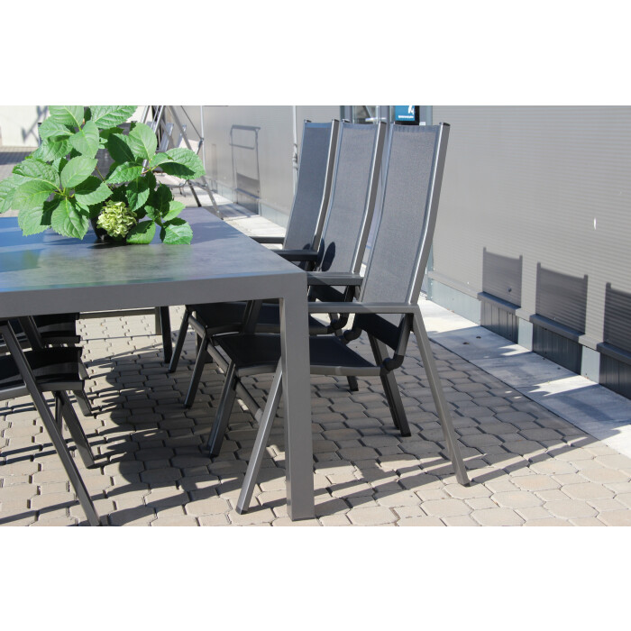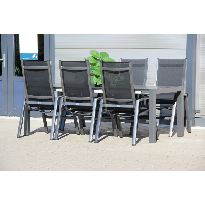 Stůl je vyroben z hliníkových lakovaných profilů s možností rozložení z 200 cm na 250 cm - 300 cm délky. Šíře stolu je 100 cm. Výška 74 cm.
