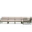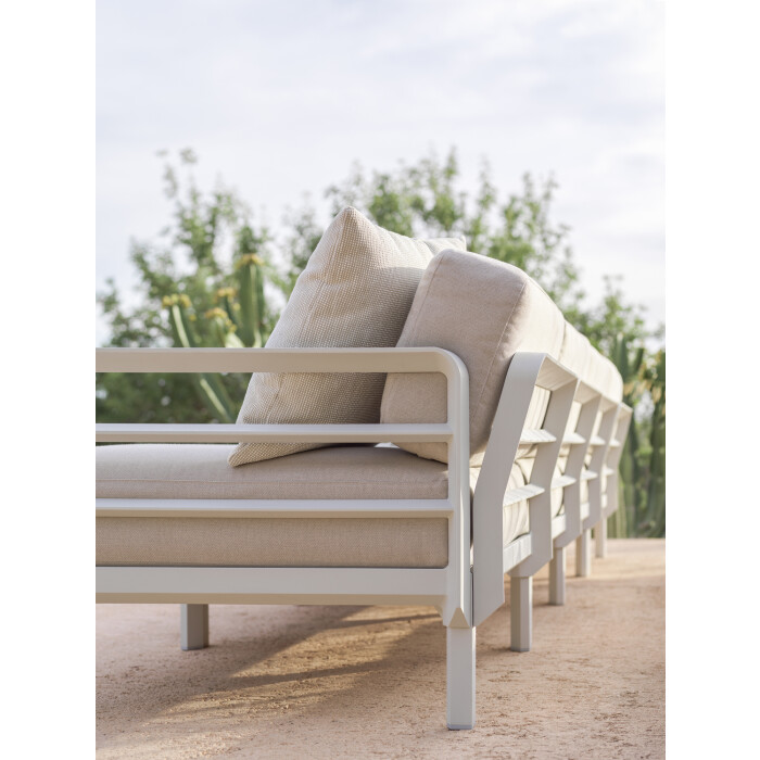 Zádová opěrka a rohový díl: polyuretanová pěna (hustota 17 kg/m3) potažená polyesterovým rounem spolu se 100% polyesterovou tkaninou s vodoodpudivou úpravou (WR) (hustota 200 gr/m2). - Lze doplnit i dalšími polštáři ve 3 různých velikostech.