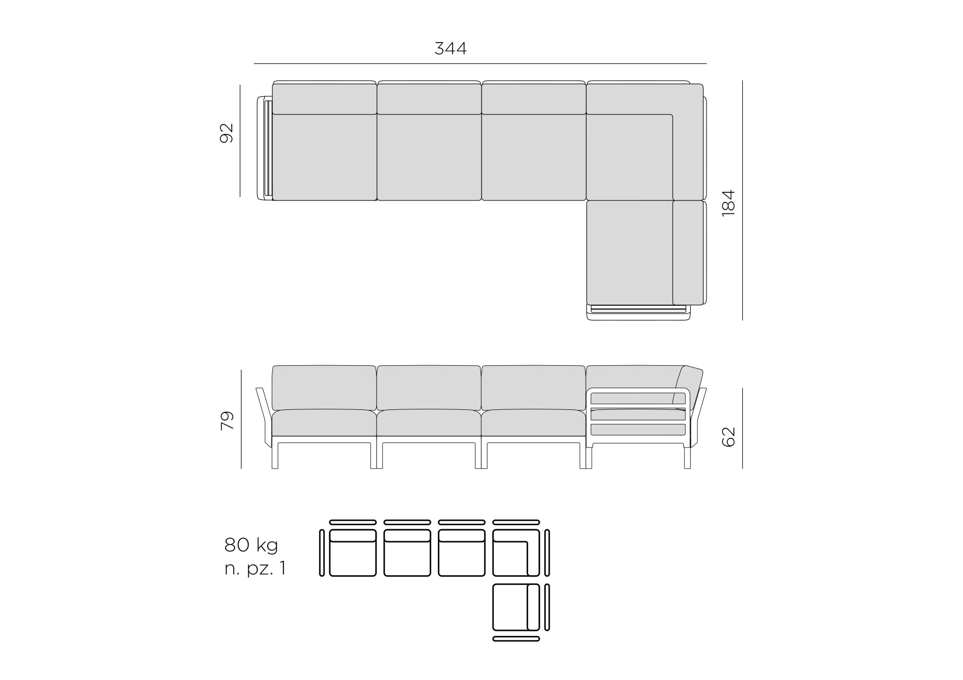 - rozměry: 341x182x79 cm | 80 kg