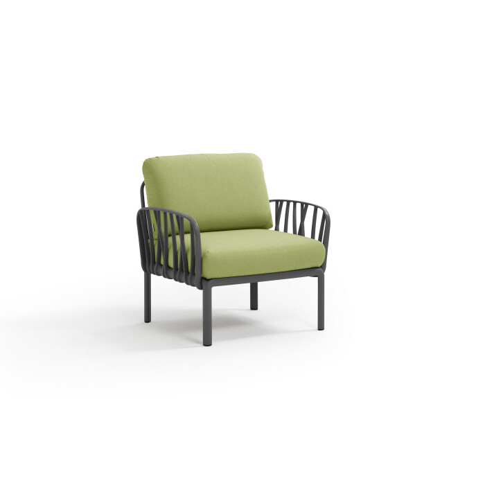 Křeslo Komodo je samostatné sofa se zádovou opěrkou a područkami. Jednotlivé díly pro sedací místa se spojují lehce tvarovanými spojkami - protidíly do sebe snadno zapadnou a při demontáži se opět lehce vyjmou. Stavebnicový systém umožňuje z jednotlivých elementů vytvořit modulární pohovku do jakéhokoliv tvaru.