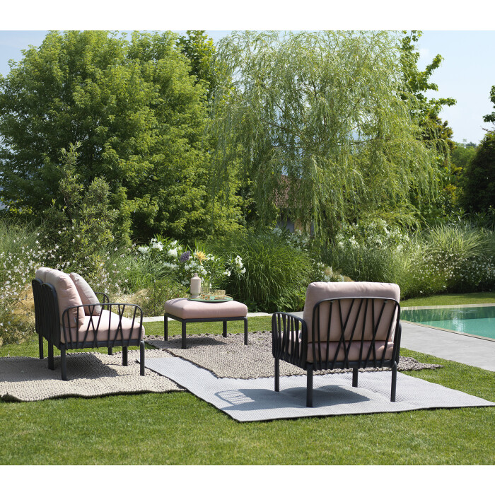 Barevná provedení rámů i polstrů je možné kombinovat. Polstry jsou v provedení acrilic acrilic Sunbrella (50% směsné akrylové vlákno SUNBRELLA®, 47% SUNBRELLA ® barvené akrylové vlákno a 3% polyester). Materiál je voděodpudivý. Odolný proti skvrnám, plísním. Světlostálost 8/8. Snímatelný potah, možnost praní do 40°C. Potah vhodný do venkovních podmínek, kdy vydrží i několikahodinový déšť.