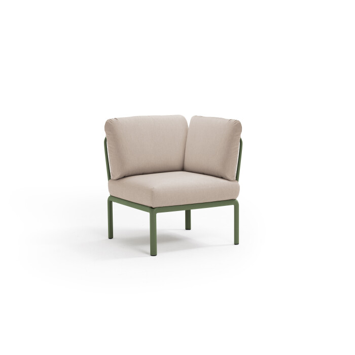 Poltrona Komodo - rohový díl je postrované sedadlo s dvěma zádovými polstry bez područek. Jedná se o samostatný modulární prvek, který tvoří roh sedačky. Na tento díl napojíte libovolné množství modulů tvořících sedací lísta z jedné nebo druhé strany. Zvolíte si tvar sedačky, jak potřebujete. Jednotlivé díly pro sedací místa se spojují lehce tvarovanými spojkami - protidíly do sebe snadno zapadnou a při demontáži se opět lehce vyjmou. Stavebnicový systém umožňuje z jednotlivých elementů vytvořit modulární pohovku do jakéhokoliv tvaru.