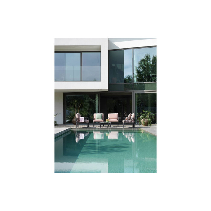 Barevná provedení rámů i polštářů jsou možné kombinovat. Polštáře jsou v provedení acrilic Sunbrella (50% směsné akrylové vlákno SUNBRELLA®, 47% SUNBRELLA ® barvené akrylové vlákno a 3% polyester). Materiál je voděodpudivý. Odolný proti skvrnám, plísním. Světlostálost 8/8. Snímatelný potah, možnost praní do 40°C. Potah vhodný do venkovních podmínek, kdy vydrží i několikahodinový déšť.