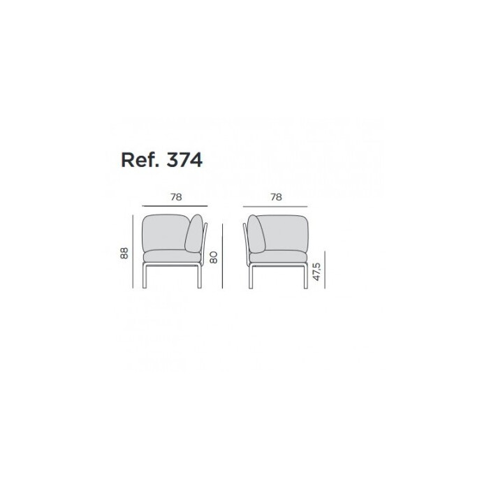 Poltrona Komodo - rohový díl je postrované sedadlo s dvěma zádovými polstry bez područek. Jedná se o samostatný modulární prvek, který tvoří roh sedačky. Na tento díl napojíte libovolné množství modulů tvořících sedací lísta z jedné nebo druhé strany. Zvolíte si tvar sedačky, jak potřebujete. Jednotlivé díly pro sedací místa se spojují lehce tvarovanými spojkami - protidíly do sebe snadno zapadnou a při demontáži se opět lehce vyjmou. Stavebnicový systém umožňuje z jednotlivých elementů vytvořit modulární pohovku do jakéhokoliv tvaru.