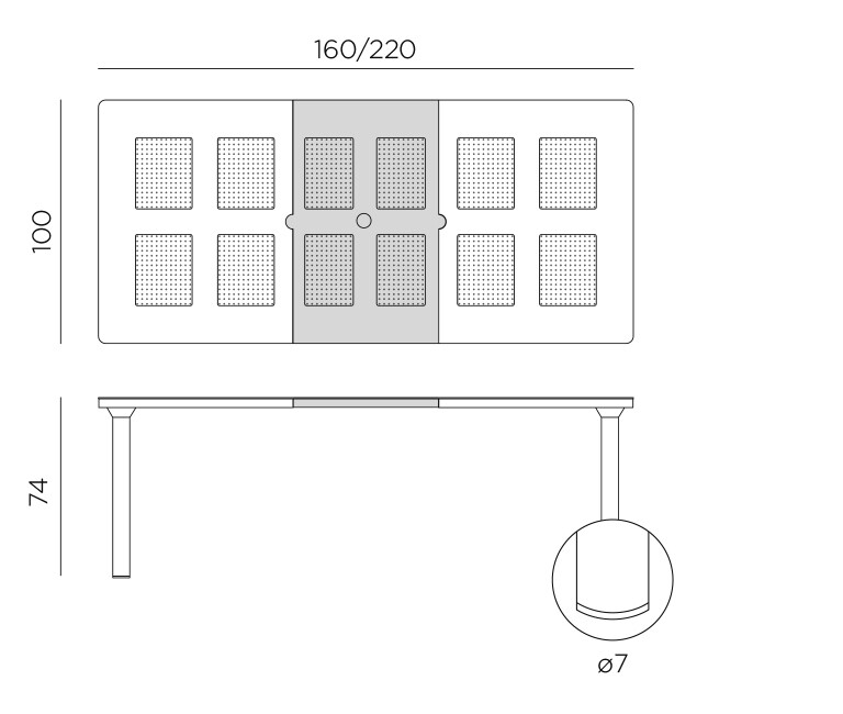 Rozkládací stůl Libeccio 160/220 s elegantní deskou z polypropylenu na hliníkovém rámu a nohou. Hlliníková konstrukce je barvená, takž eje dokonale sladěná s deskou.