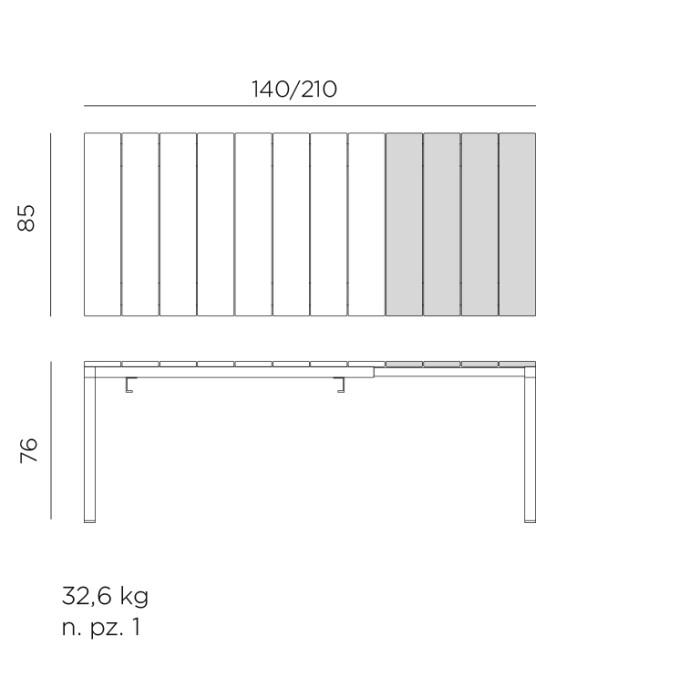 Rozkládací stůl Rio 140/210 o základních rozměrech 140 x 85 cm je ideální volbou pro pohodlné stolování až šesti osob. Stůl je možno rozložit na velikost 210 x 85 cm vložením středového panelu, který je umístěný pod deskou jídelního stolu, čímž vytvoříte dostatek místa až pro osm hostů.