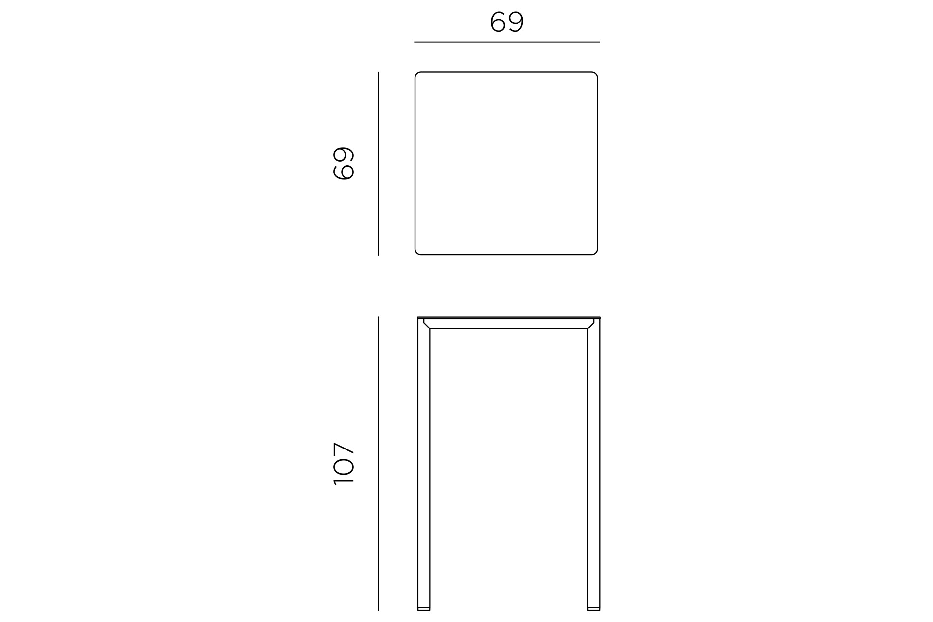 Deska z prvotřídního HPL laminátu Materia s masivním jádrem – jedná se o materiál mimořádně odolný vůči běžnému opotřebení, který si i po mnoha letech užívání zachovává svůj původní vzhled. Lakované hliníkové nohy s matným povrchem dodávají stolu moderní charakter a zajišťují pevnost celé konstrukce. Velkým přínosem jsou také nastavitelné koncovky nohou – díky nim můžete snadno kompenzovat drobné nerovnosti podlahy a dosáhnout tak dokonalé stability stolu.