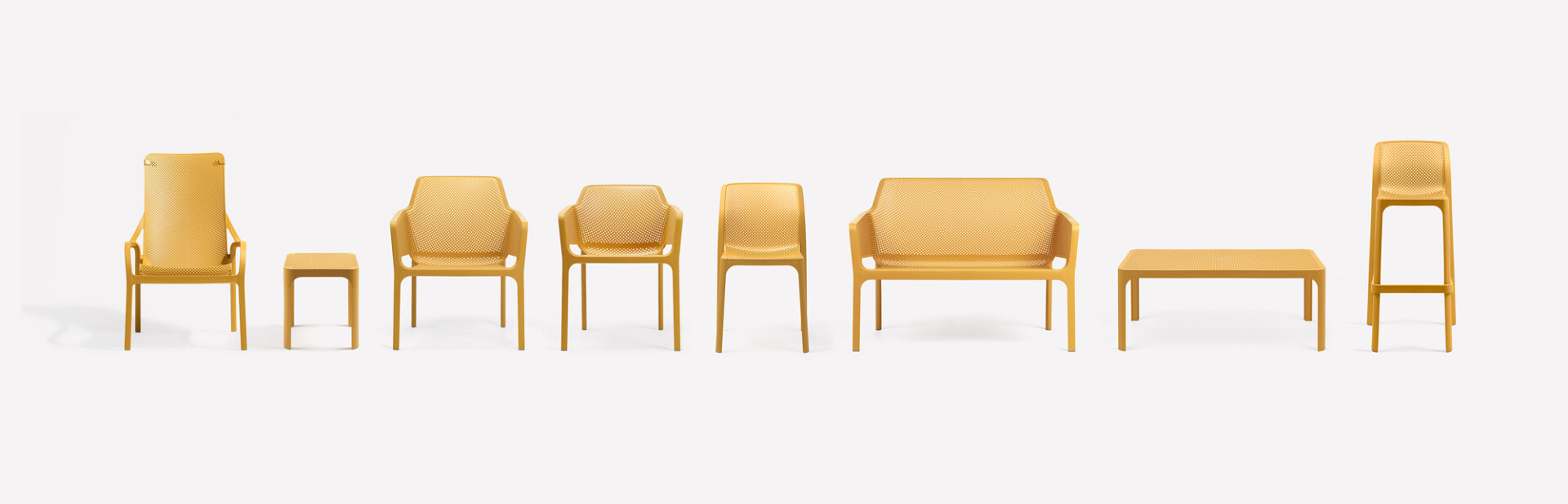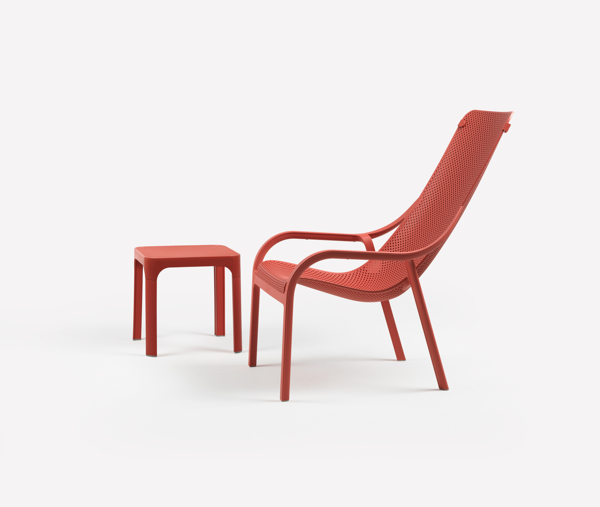 Net 40 je elegantní nízký stůl, ketrý je vyroben z polypropylenu zpevněného skelným vláknem. Po celém vnitřním obvodu je rám stolu zpevněn hliníkovýmí výztuhami, díky kterým je stolek velmi pevný a má větší nosnost.