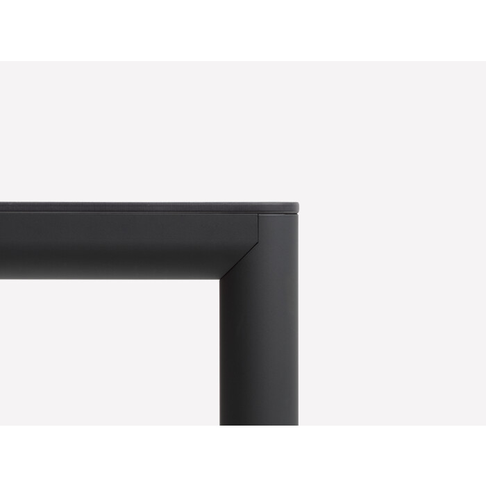 Deska z prvotřídního HPL laminátu Materia s masivním jádrem – jedná se o materiál mimořádně odolný vůči běžnému opotřebení, který si i po mnoha letech užívání zachovává svůj původní vzhled. Lakované hliníkové nohy s matným povrchem dodávají stolu moderní charakter a zajišťují pevnost celé konstrukce. Velkým přínosem jsou také nastavitelné koncovky nohou – díky nim můžete snadno kompenzovat drobné nerovnosti podlahy a dosáhnout tak dokonalé stability stolu.