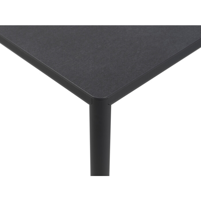 Deska z prvotřídního HPL laminátu Materia s masivním jádrem – jedná se o materiál mimořádně odolný vůči běžnému opotřebení, který si i po mnoha letech užívání zachovává svůj původní vzhled. Lakované hliníkové nohy s matným povrchem dodávají stolu moderní charakter a zajišťují pevnost celé konstrukce. Velkým přínosem jsou také nastavitelné koncovky nohou – díky nim můžete snadno kompenzovat drobné nerovnosti podlahy a dosáhnout tak dokonalé stability stolu.