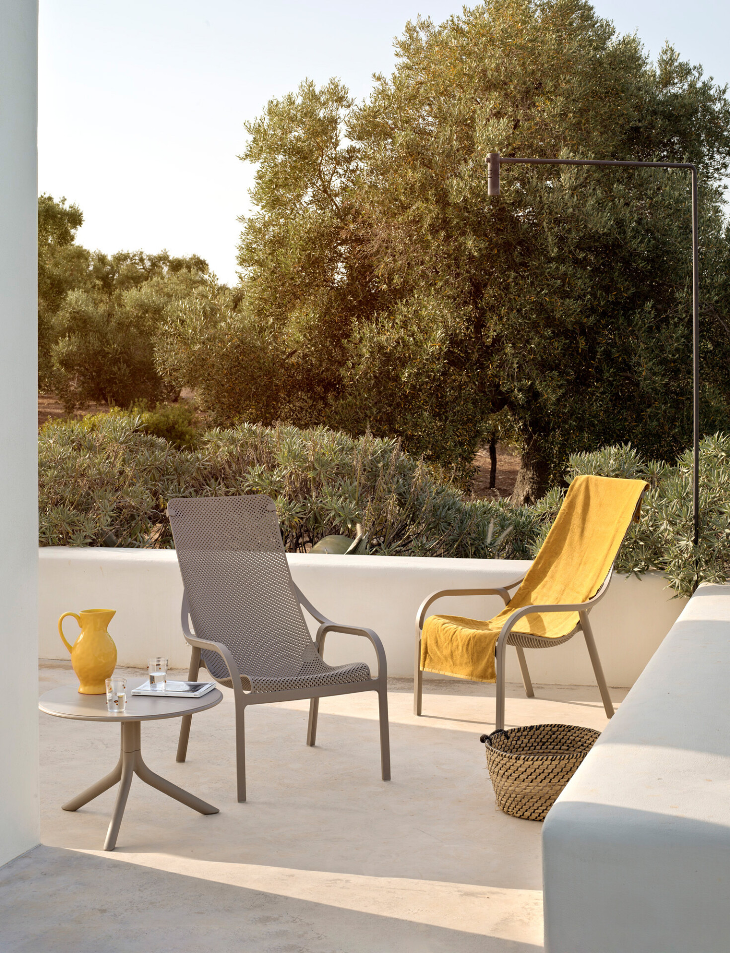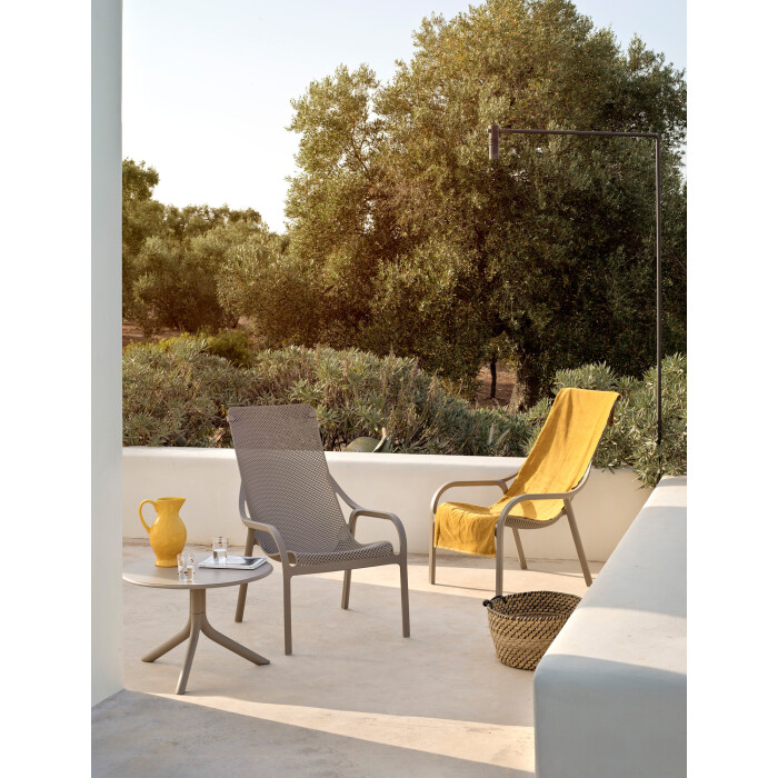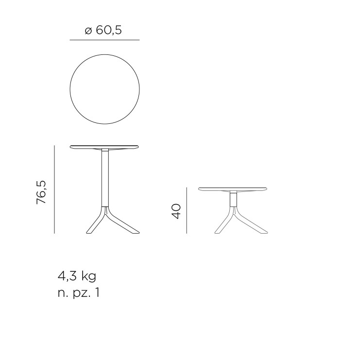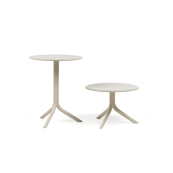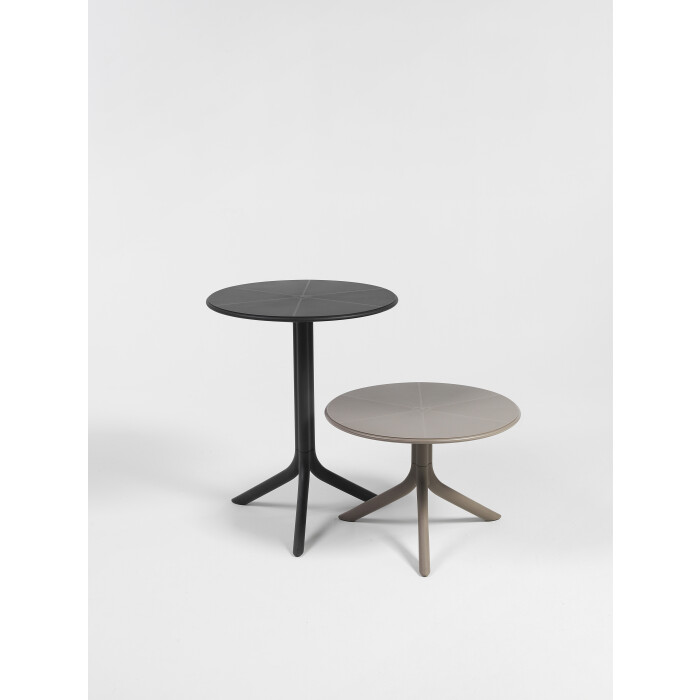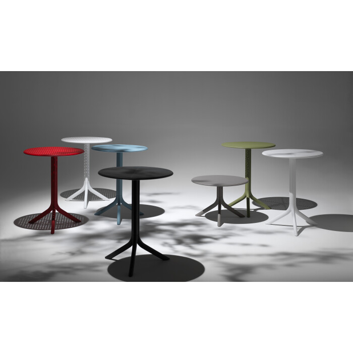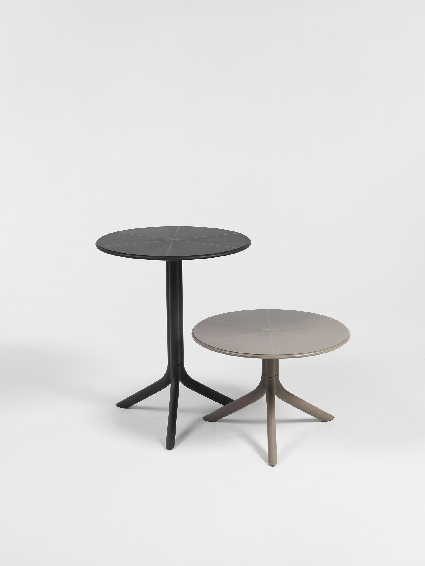 Spritz je stolek ze skelných vláken s kulatou deskou a třínohou podnoží, vhodný pro venkovní použití, ale také perfektní jako doplněk do interiéru. Snadno se montuje a demontuje a dodává se se sadou, která umožňuje dvě výšky.