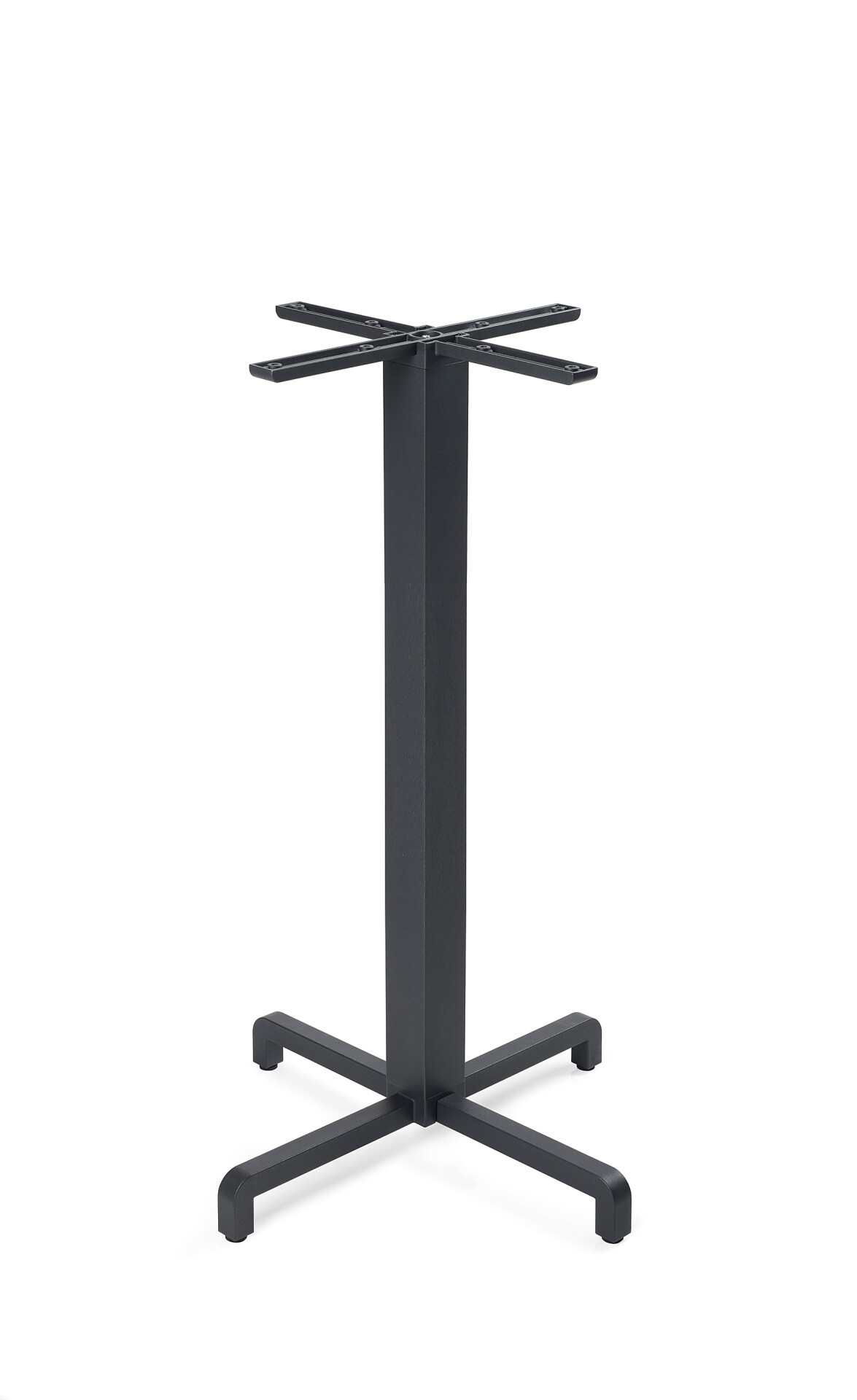 Vysoká stolová podnož hliníková a povrchově barvená. Každá noha má nastavitelnou aretaci, takže se snadno stůl ukotví i na nerovném povrchu.