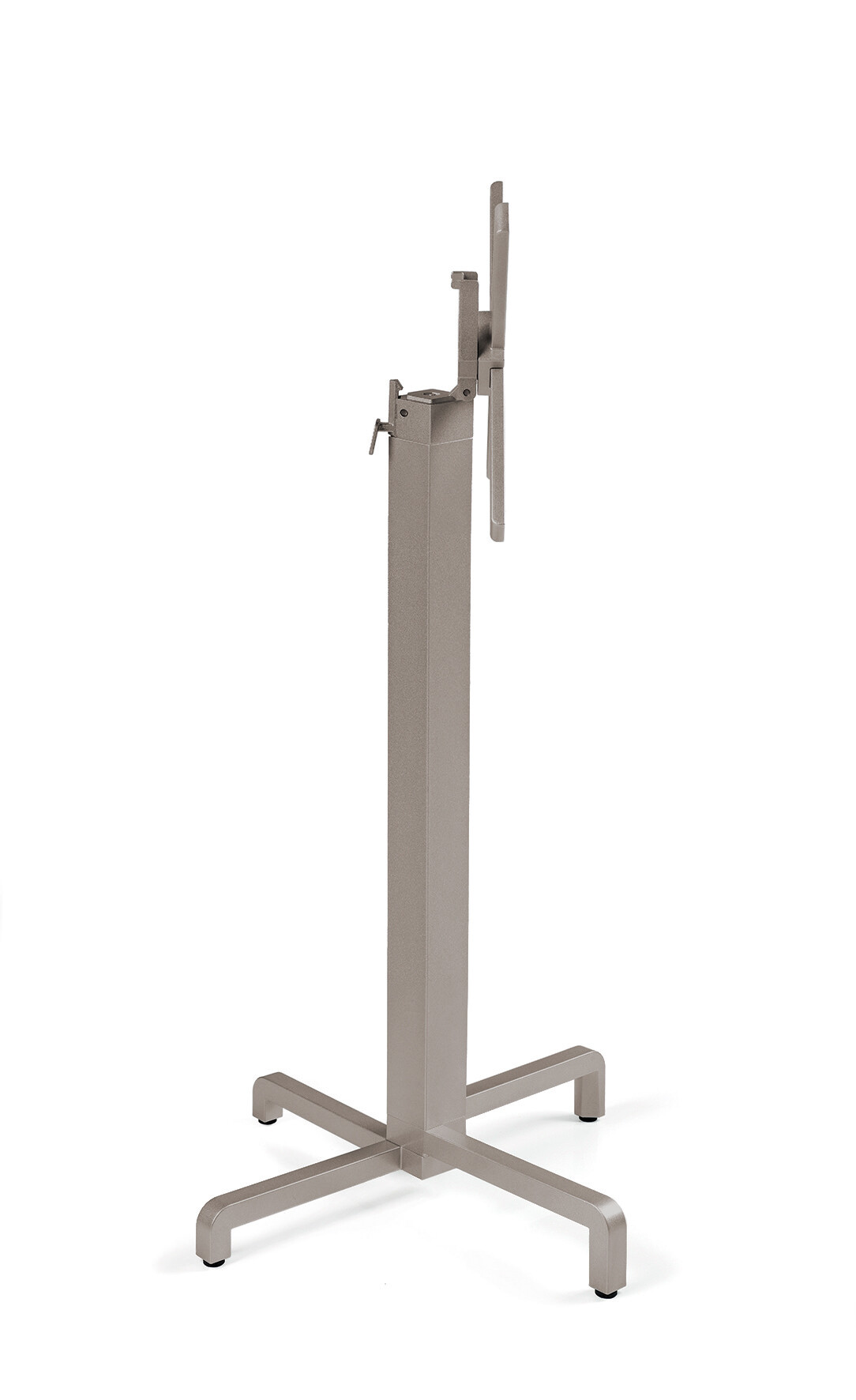 Vysoká stolová podnož hliníková a povrchově barvená. Každá noha má nastavitelnou aretaci, takže se snadno stůl ukotví i na nerovném povrchu.