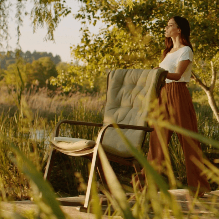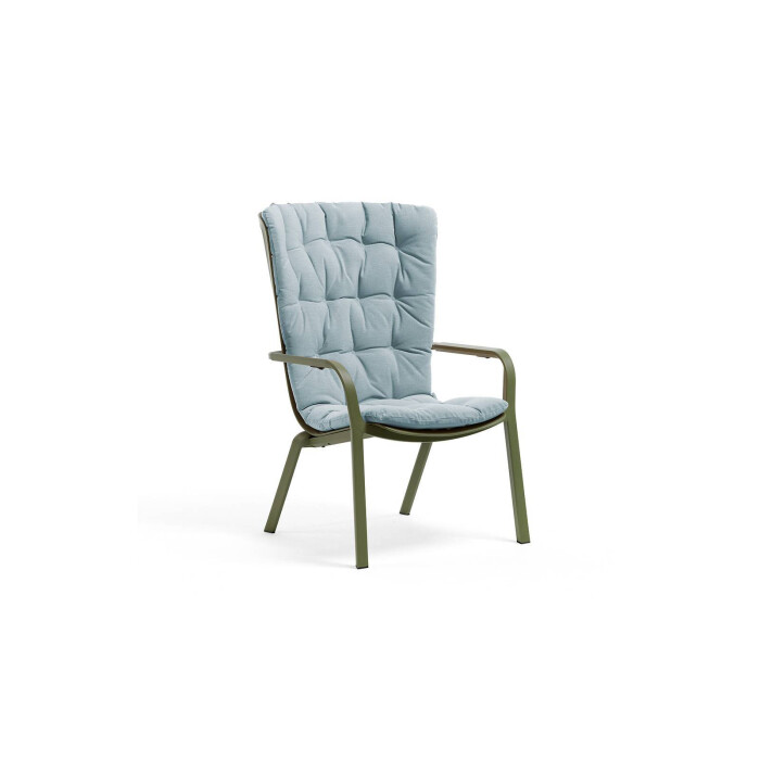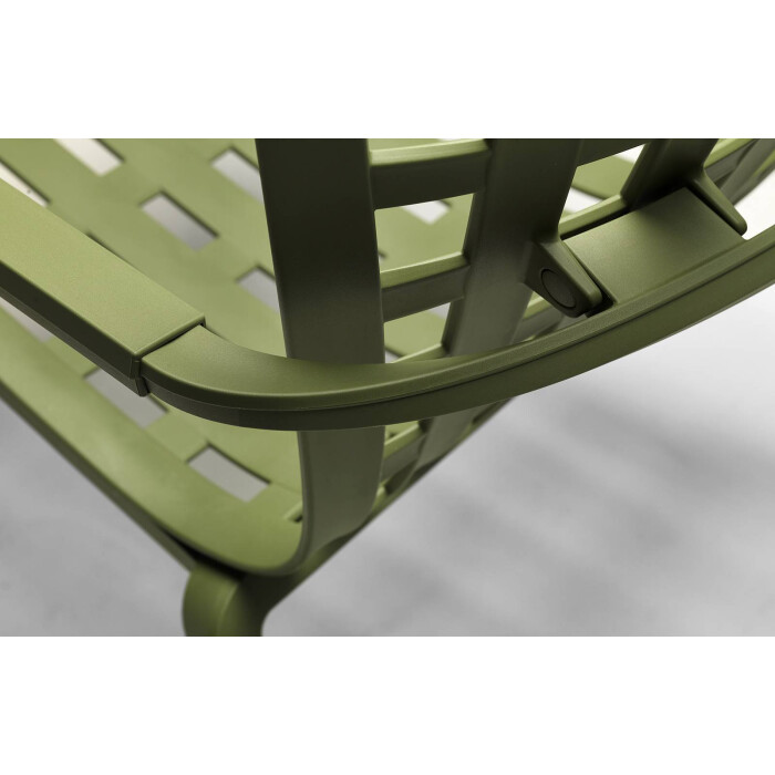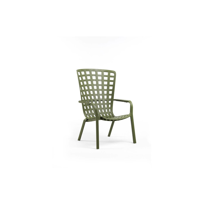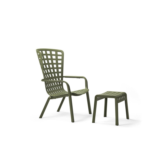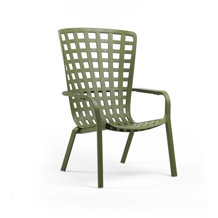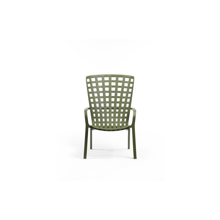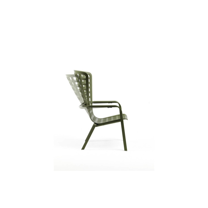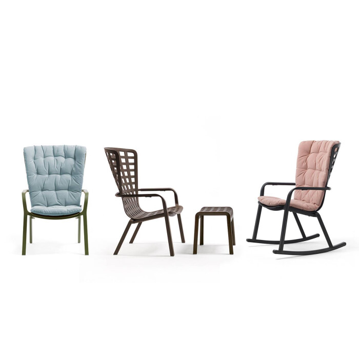 Folio je venkovní relaxační křeslo vyrobené z perforované sklolaminátové pryskyřice s károvanými motivy a matným povrchem. Křeslo má obepínající opěradlo plynule spojené s velkoryse sníženým sedákem, jedinečným a rafinovaným strukturálním objetím, které lze sklopit do dvou pohodlných poloh.
