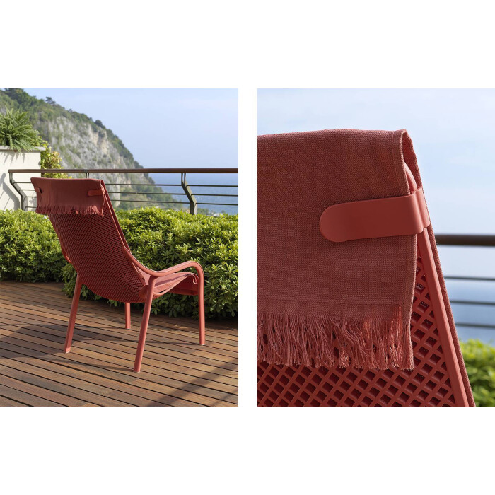 Relaxační křeslo Net Lounge v příjemném skloněném tvaru vyzývá k uvolněnému posezení po wellness proceduře nebo podobném zážitku. V horní části jsou praktické úchytky pro ručník, který se pod sebe rozprostře.
