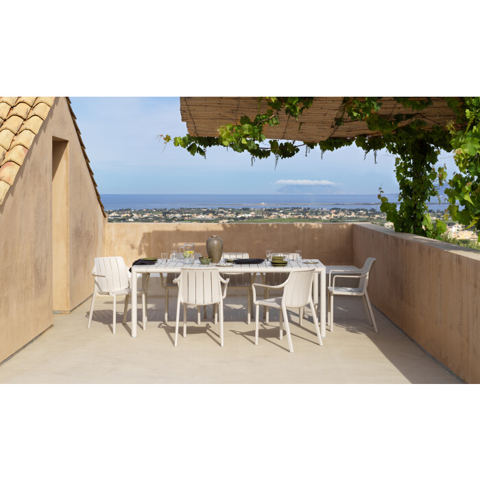 Vyrobena z pevného konstrukčního polypropylenu zpevněného skelným vláknem. Ošetřeno ochranými anti UV stabilizátory pro dlouhodobé využití v exteriérech. Konce nohou zajištěny protiskluznými koncovkami. Vhodná do vysoce namáhaných restauračních provozů.