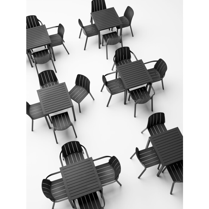 Vyrobena z pevného konstrukčního polypropylenu zpevněného skelným vláknem. Ošetřeno ochranými anti UV stabilizátory pro dlouhodobé využití v exteriérech. Konce nohou zajištěny protiskluznými koncovkami. Vhodná do vysoce namáhaných restauračních provozů.