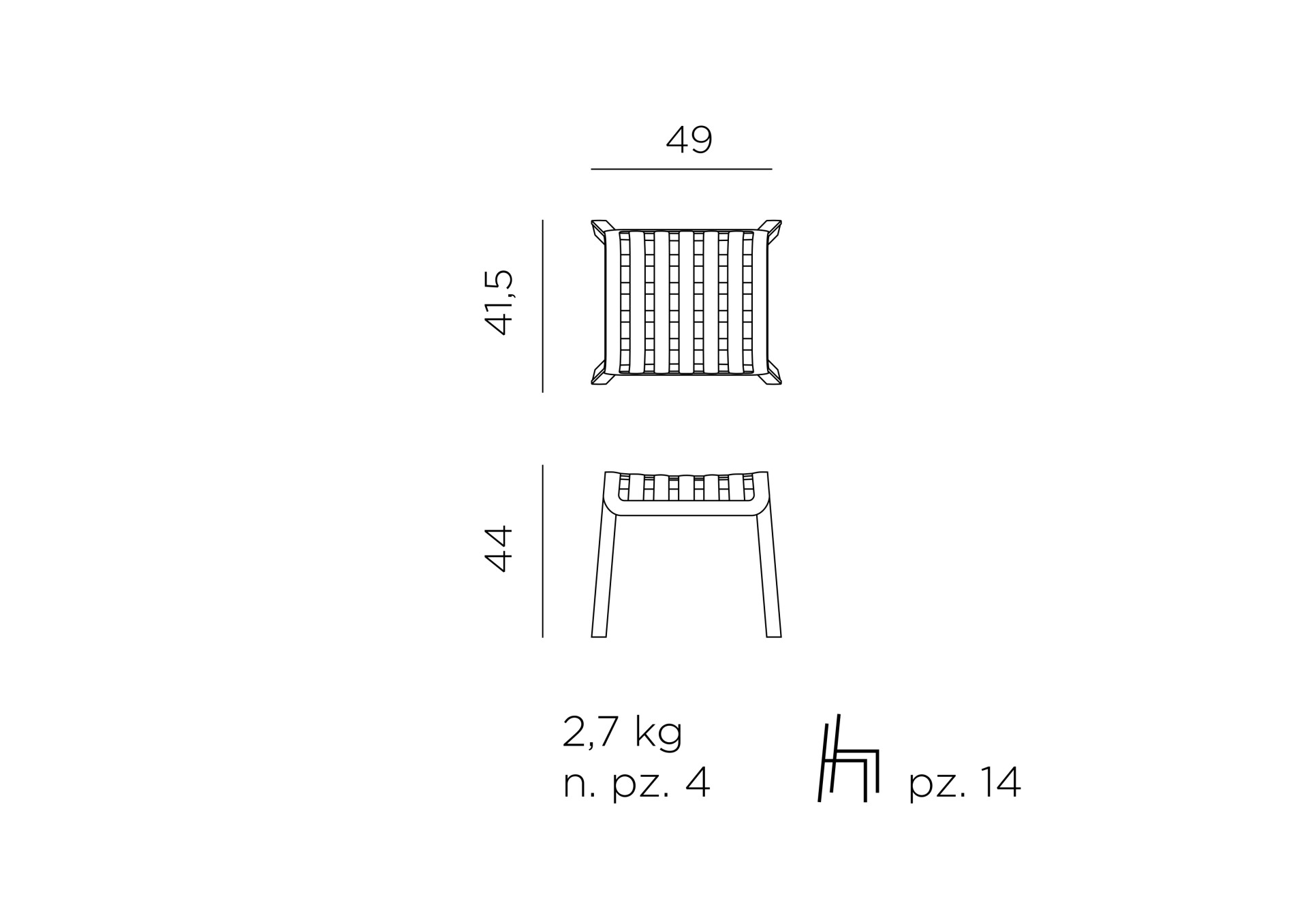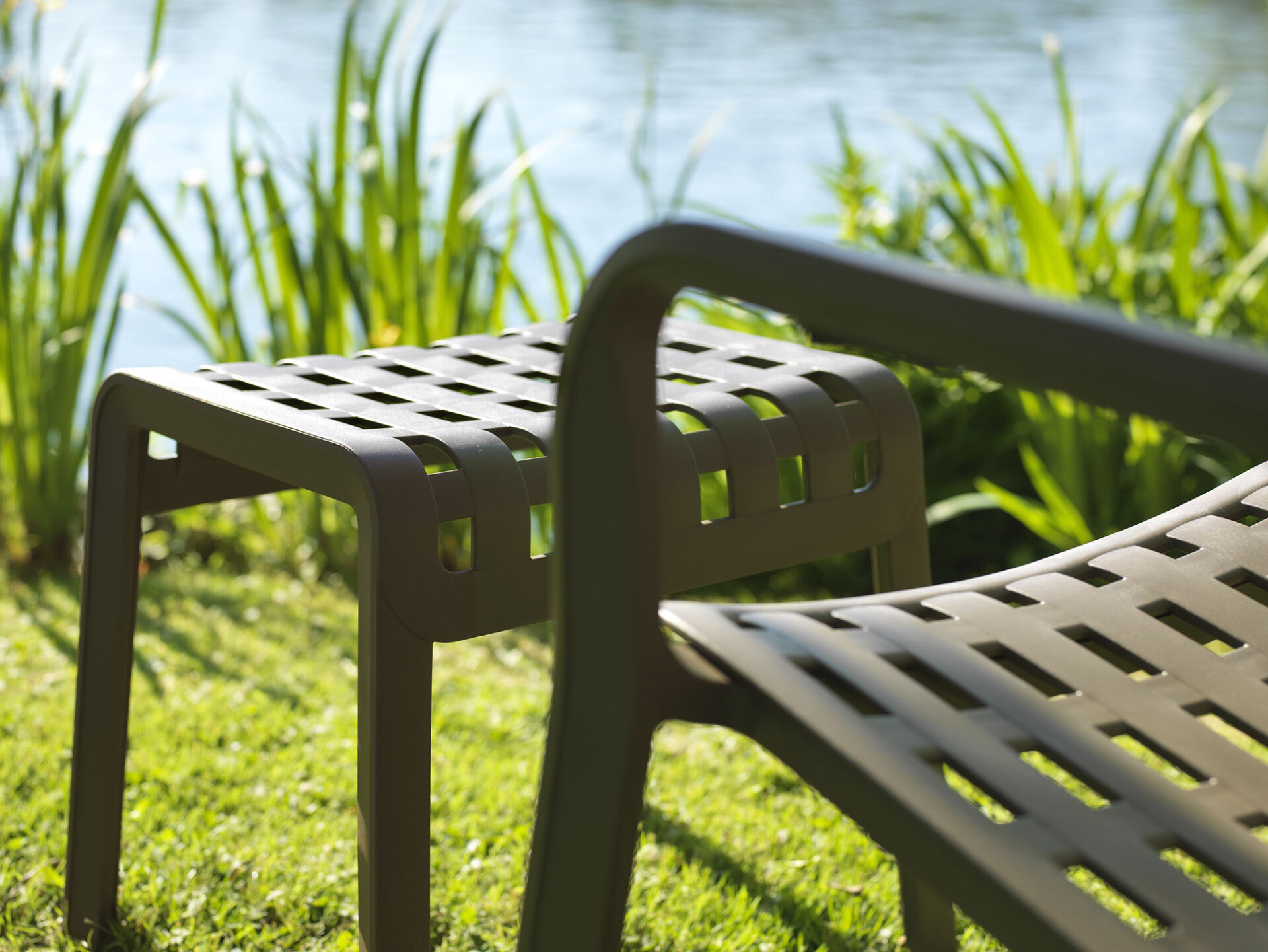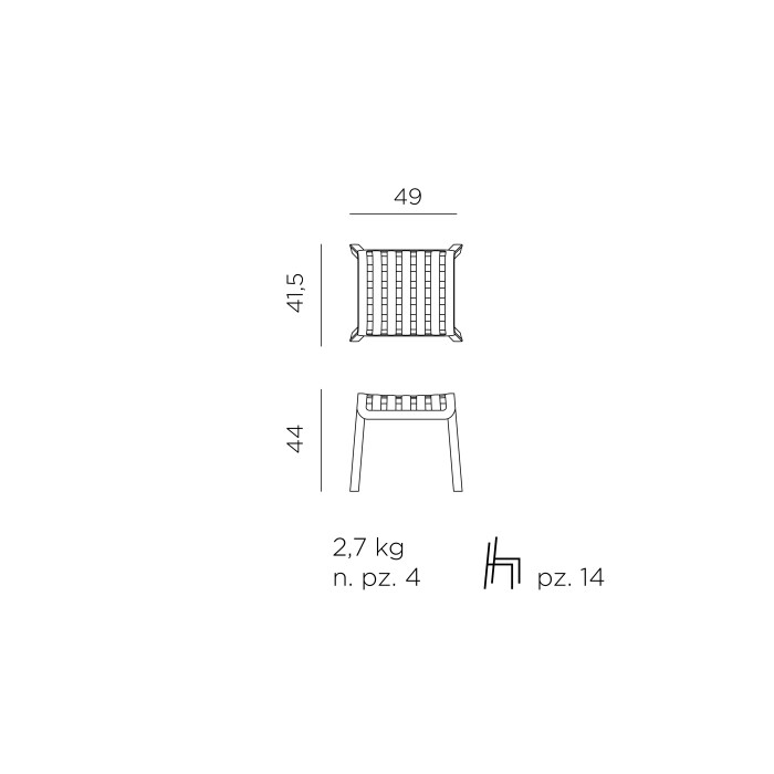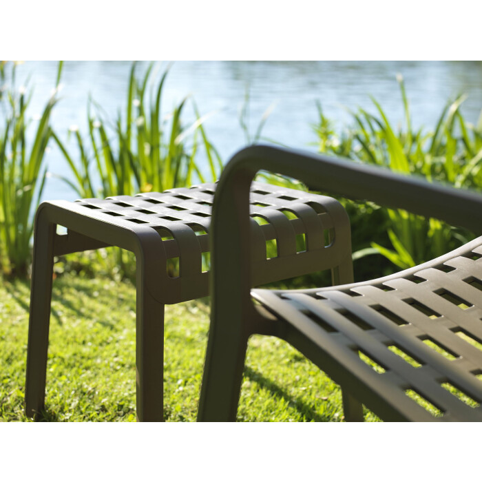Monobloc mini stolička / opěrka pro nohy. Rovnoměrně zbarvené polypropylenové pryskyřice ze skleněných vláken s UV aditivy. Matný povrch. S protiskluzovými nohami. Polštář k dispozici na objednávku. Recyklovatelná pryskyřice.