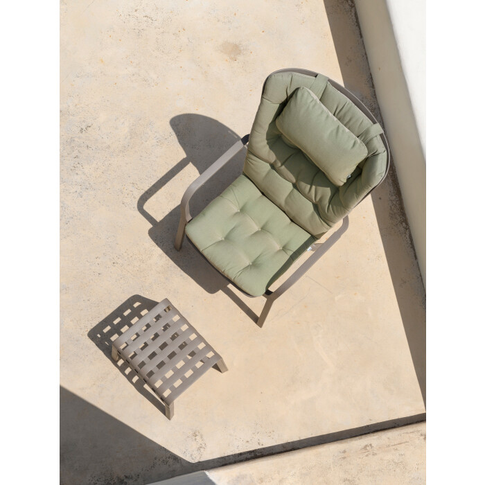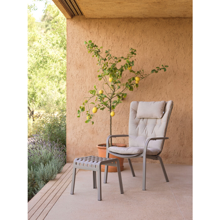 Poggio je opěrka pro nohy / stolička pro venkovní použití vyrobená ze sklolaminátové pryskyřice a opatřená perforovaným rámem zdobeným čtvercovým vzorem, který dodává exteriérům nádech netradičního stylu. Poggio je funkční opěrka nohou v nové kolekci relaxačních křesel Folio - k dostání ve stejných barvách a čalounění - nábytek, který lze zakoupit samostatně.