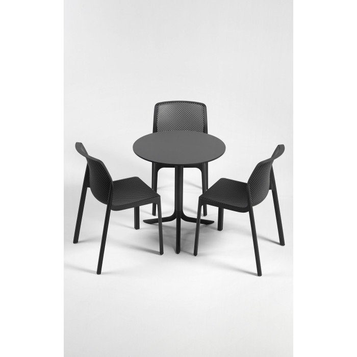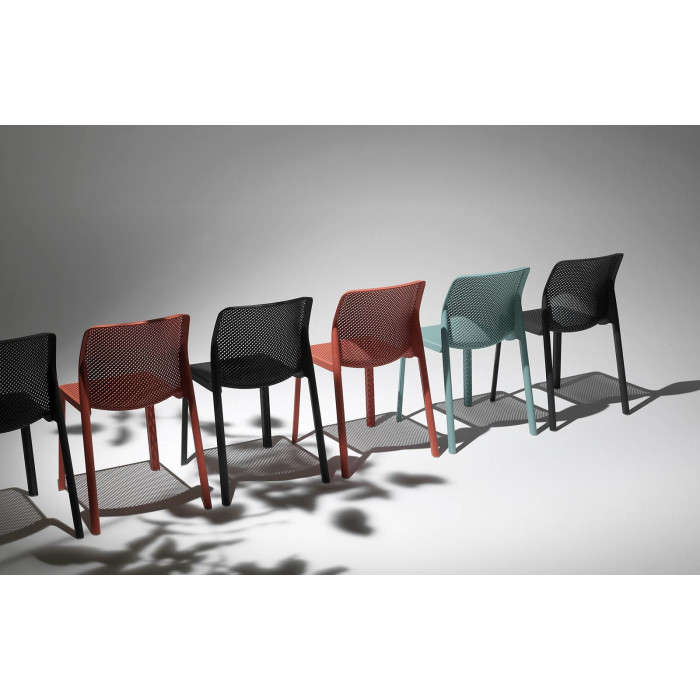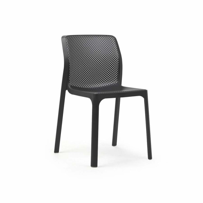 Židle bez područek Bit, pohodlná židle k jídelnímu stolu. Vyrobena z nejkvalitnějšího konstrukčního polypropylenu zpevněného skelným vláknem. Materiál obsahuje aditiva proti působení UV záření a tak je chráněn proti atmosférickým vlivům. Probarvení ve hmotě zajišžuje stálost barevného provedení. Křeslo je určeno pro využití ve vysoce náročných restauračních a hotelových provozech. Ke křeslu bude možné objednat i polstry.