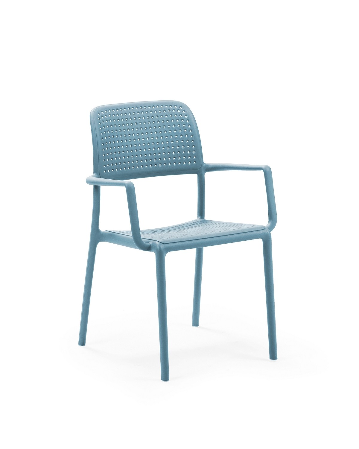 Bora, pohodlná židle s područkami k jídelnímu stolu. Vyrobena z nejkvalitnějšího konstrukčního polypropylenu zpevněného skelným vláknem. Materiál obsahuje aditiva proti působení UV záření a tak je chráněn proti atmosférickým vlivům. Probarvení ve hmotě zajišžuje stálost barevného provedení. Křeslo je určeno pro využití ve vysoce náročných restauračních a hotelových provozech. Ke křeslu bude možné objednat i polstry.