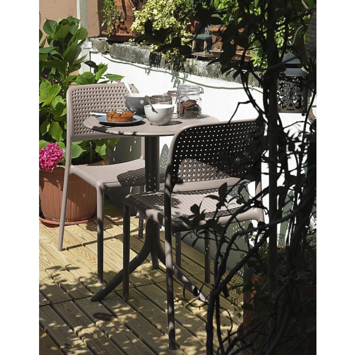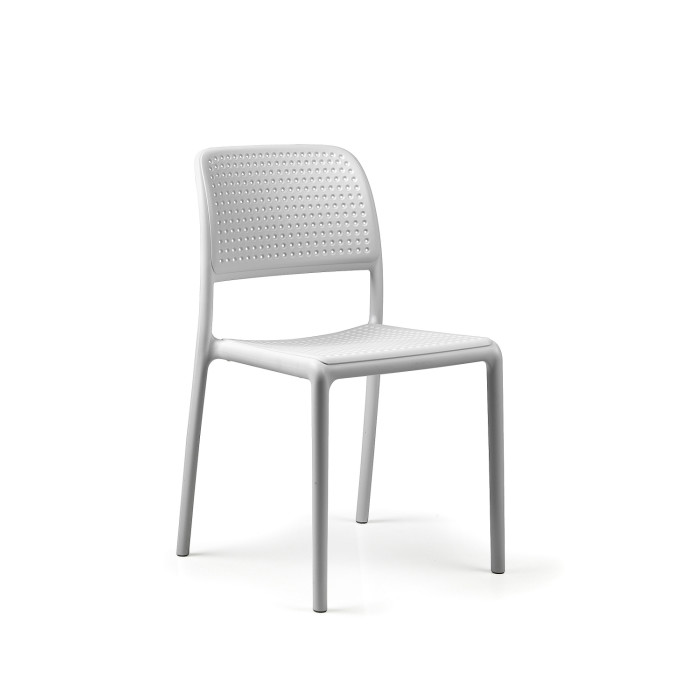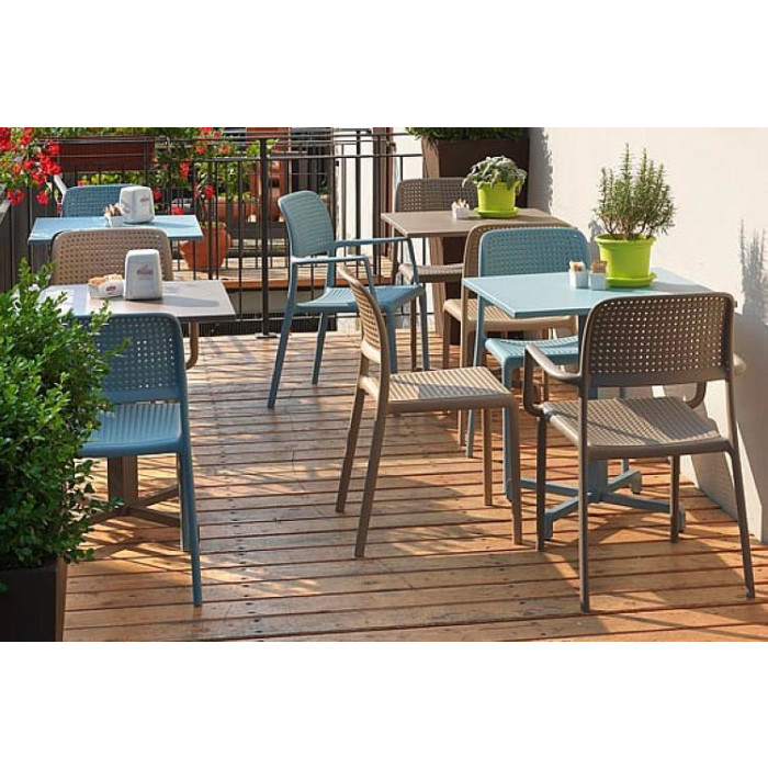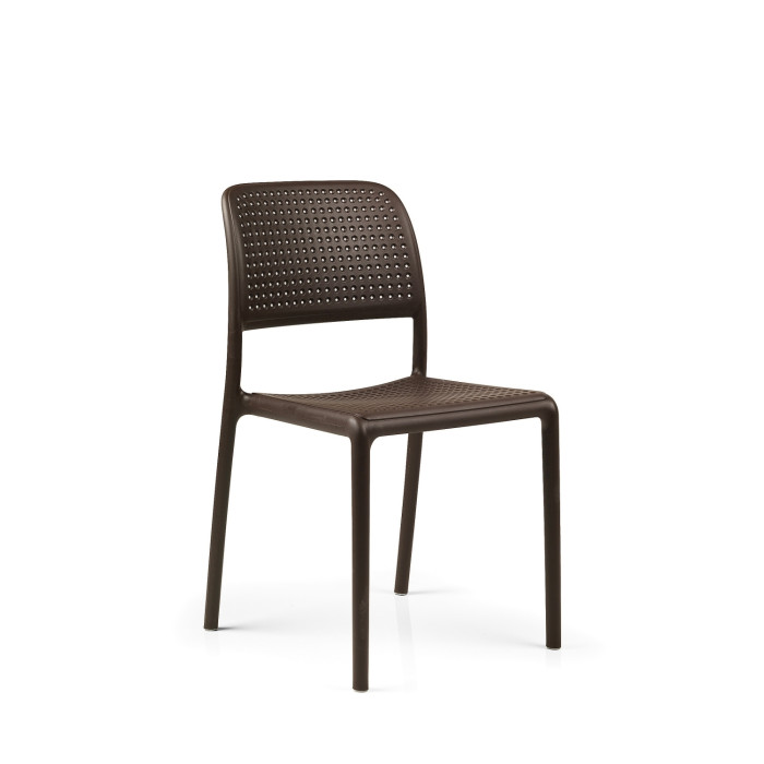 Bora Bistrot, pohodlná židle bez područek k jídelnímu stolu. Vyrobena z nejkvalitnějšího konstrukčního polypropylenu zpevněného skelným vláknem. Materiál obsahuje aditiva proti působení UV záření a tak je chráněn proti atmosférickým vlivům. Probarvení ve hmotě zajišžuje stálost barevného provedení. Křeslo je určeno pro využití ve vysoce náročných restauračních a hotelových provozech. Ke křeslu bude možné objednat i polstry.