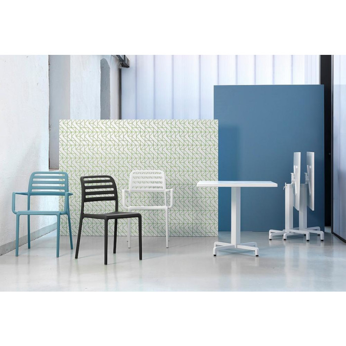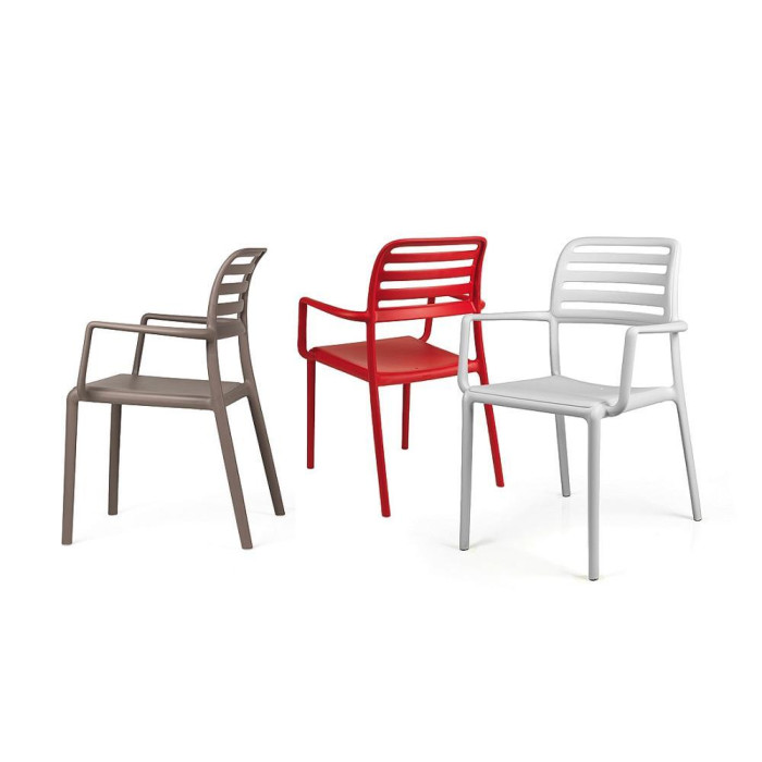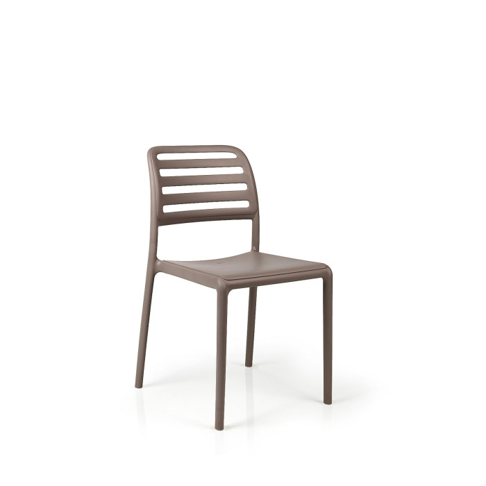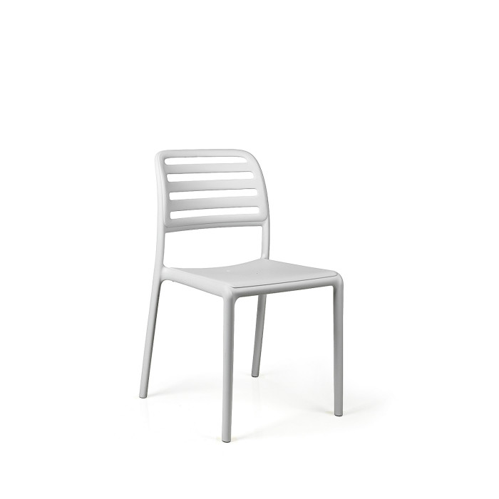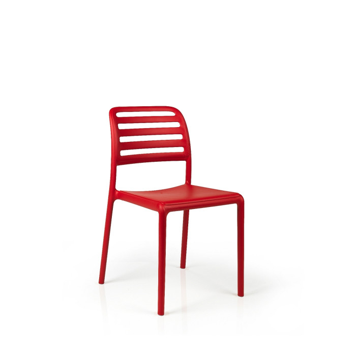 Costa Bistrot, pohodlná židle bez područek k jídelnímu stolu. Vyrobena z nejkvalitnějšího konstrukčního polypropylenu zpevněného skelným vláknem. Materiál obsahuje aditiva proti působení UV záření a tak je chráněn proti atmosférickým vlivům. Probarvení ve hmotě zajišžuje stálost barevného provedení. Křeslo je určeno pro využití ve vysoce náročných restauračních a hotelových provozech. Ke křeslu bude možné objednat i polstry.