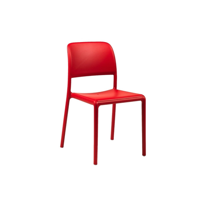 Riva Bistrot, pohodlná židle bez područek k jídelnímu stolu. Vyrobena z nejkvalitnějšího konstrukčního polypropylenu zpevněného skelným vláknem. Materiál obsahuje aditiva proti působení UV záření a tak je chráněn proti atmosférickým vlivům. Probarvení ve hmotě zajišžuje stálost barevného provedení. Křeslo je určeno pro využití ve vysoce náročných restauračních a hotelových provozech. Ke křeslu bude možné objednat i polstry.