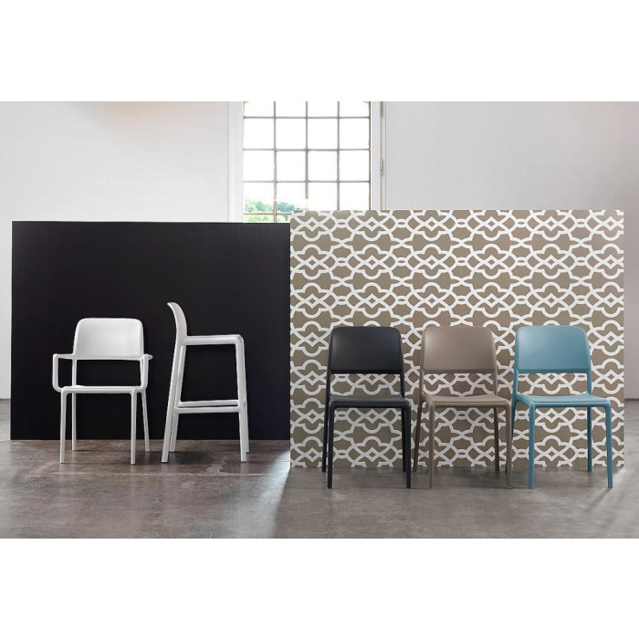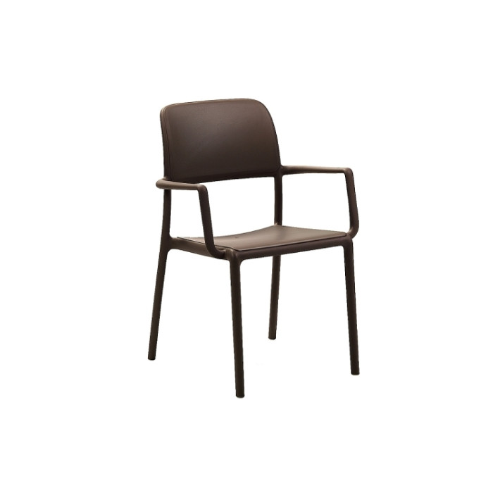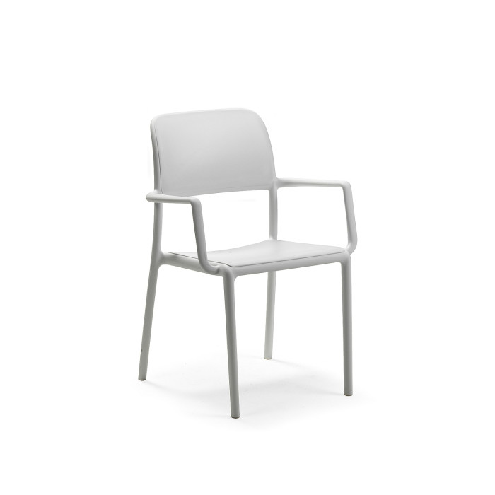 Riva, pohodlná židle s područkami k jídelnímu stolu. Vyrobena z nejkvalitnějšího konstrukčního polypropylenu zpevněného skelným vláknem. Materiál obsahuje aditiva proti působení UV záření a tak je chráněn proti atmosférickým vlivům. Probarvení ve hmotě zajišžuje stálost barevného provedení. Křeslo je určeno pro využití ve vysoce náročných restauračních a hotelových provozech. Ke křeslu bude možné objednat i polstry.