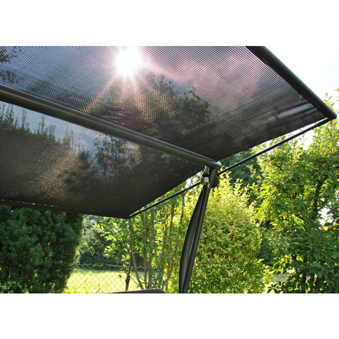 - Sedák, opěradlo a střecha: Odolná textílie Primetex (70% PET / 30% PVC)