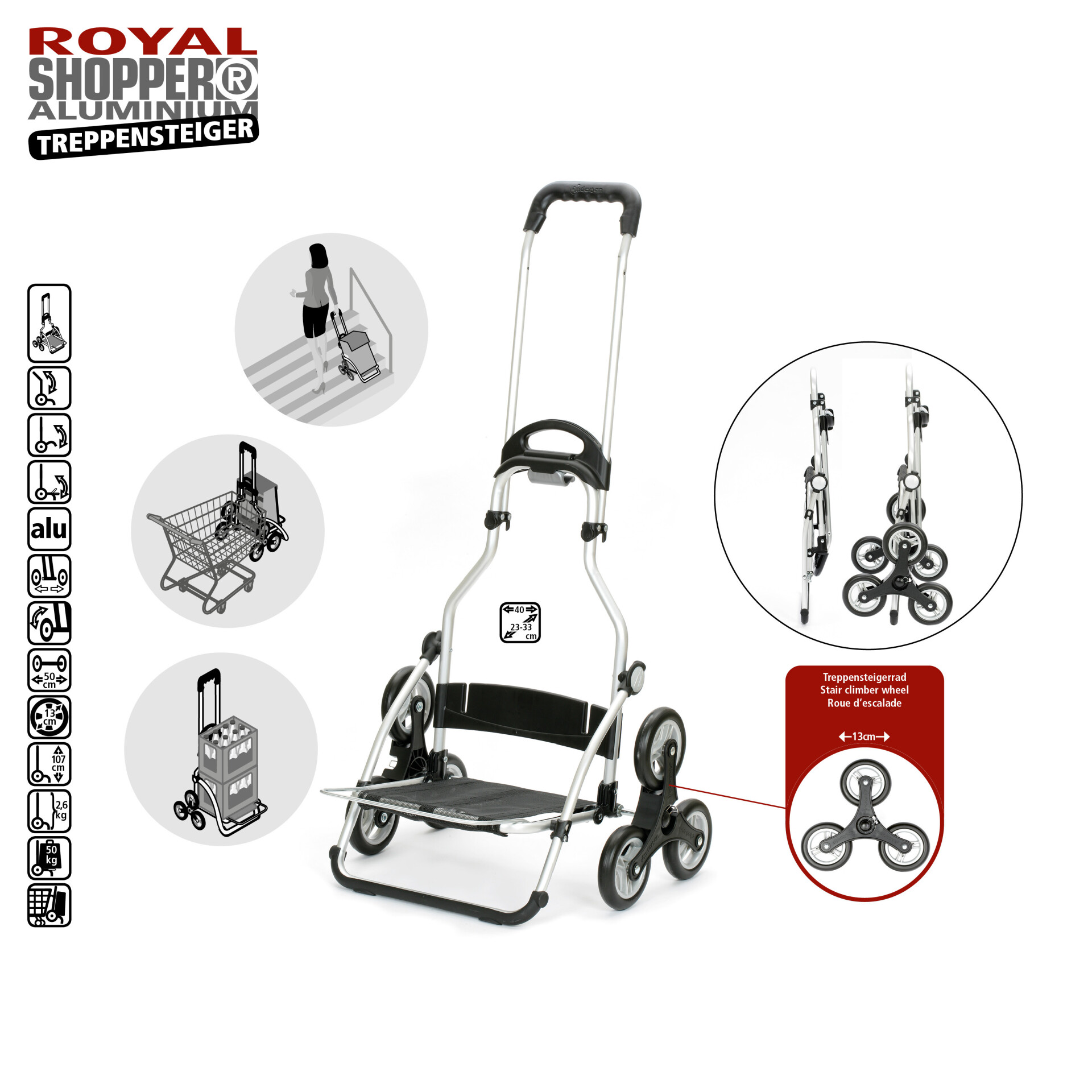 ROYAL SHOPPER do schodů, tuto řadu nákupní tašky na kolečkách oceníte v případě, že musíte zdolávat schody. Trojkolečka budou snadno kopírovat jeden schod za druhým s minimální námahou.