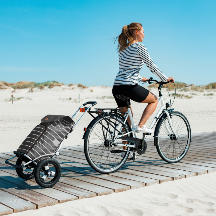 ROYAL SHOPPER, luxusní řada tašek z hliníku s možností výběru kol různých velikostí. Koly plnými, nafukovacími nebo i s ložisky. Tuto nepřehlédnutelnou řadu skládacích tašek na kolečkách lze využít k různým cestám. Snadno pojedou po nezpevněných chodnících nebo parkovištích před hotely, dokonce zvládnou i schody.