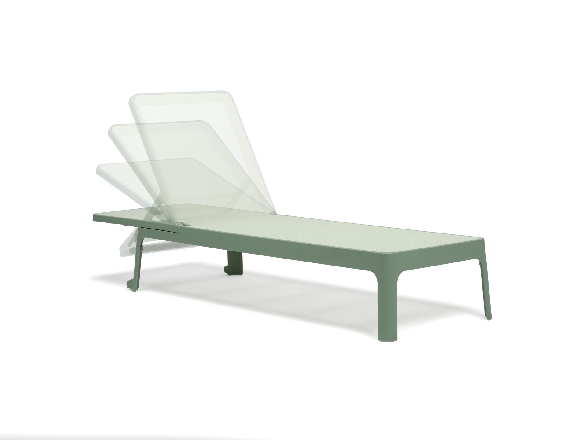 Stohovatelné lehátko bez područek. Materiál: rám z polypropylenu s UV úpravou, barvený ve hmotě skelnými vlákny. Matný povrch. Prodyšný, vyměnitelný vnitřek ze syntetické tkaniny. Recyklovatelná pryskyřice.