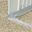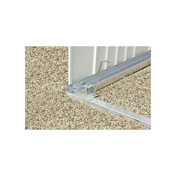 - Pokud je podlahový rám položen přímo na štěrkový podklad (cca 10 cm štěrk, bez základů nebo desek), jsou pro upevnění k zemi nutné zemní kotvy.