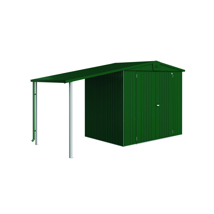 Boční přístřešek pro zahradní přístřešek Europa lze připevnit buď vlevo, vpravo nebo na obě strany přístřešku. Sada obsahuje podpěry, krátký svod na dešťovou vodu a upevňovací materiál (není k dispozici pro velikost 1 a velikost 2A).