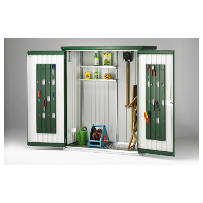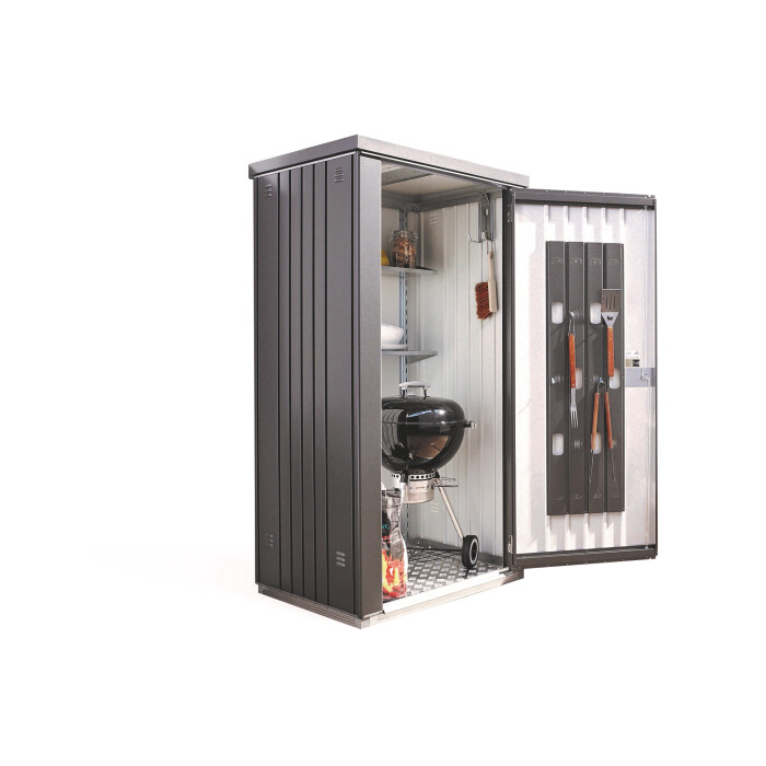 Krásná skříň s vysokou užitnou hodnotou. Je velmi praktická pro malé prostory. V zahradě, na terase, v garáži nebo na balkóně, chrání a udržuje pořádek, aniž by omezovala Váš životní prostor. Se skříní na nářadí od Biohortu můžete uklidit své zahradní náčiní, nářadí, hračky apod. a ochránit je před dešťovou vodou nebo krádeží. Harmonicky se začlení – vzhledem ke své kompaktní velikosti a elegantnímu designu - na každém místě.