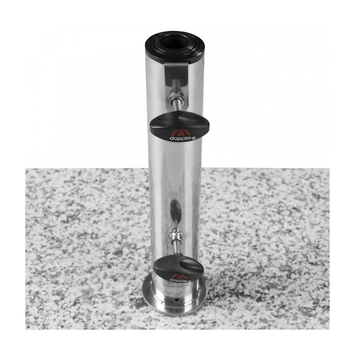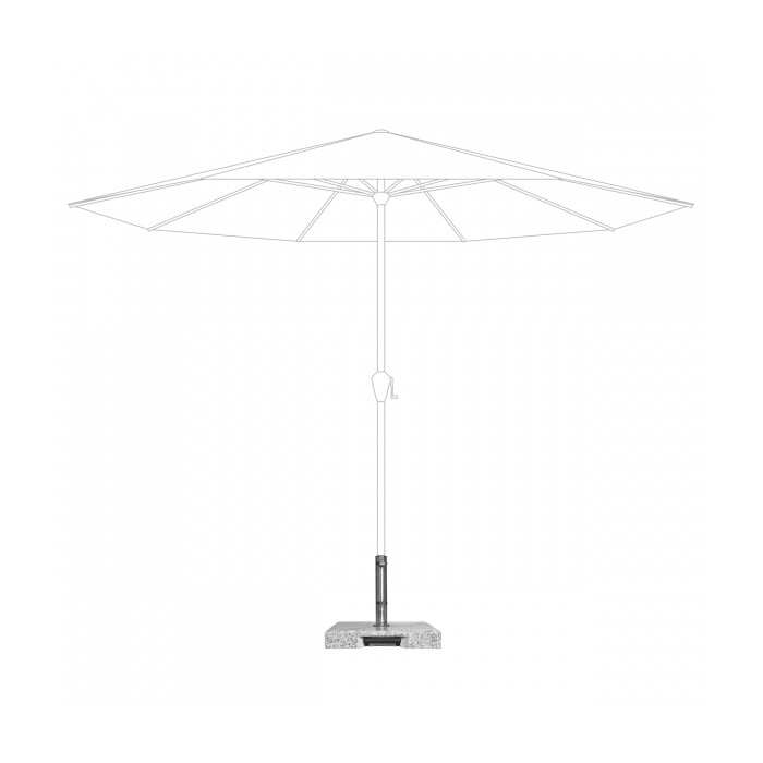 Slunečník je optimálně upevněn v držáku pomocí dvou upevňovacích šroubů. Základna je vyrobena z leštěné žuly. Držák slunečníku je vyroben z robustní nerezové oceli. Stojan je také vybaven praktickým zapuštěným úchytem. To umožňuje snadné zvedání a nastavení podstavce.
