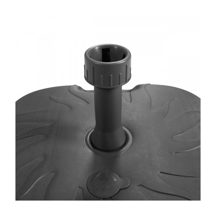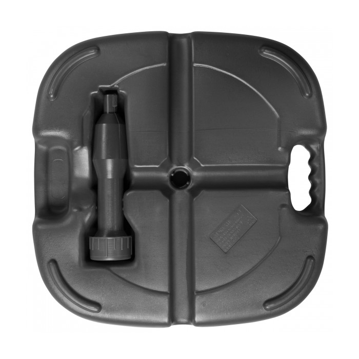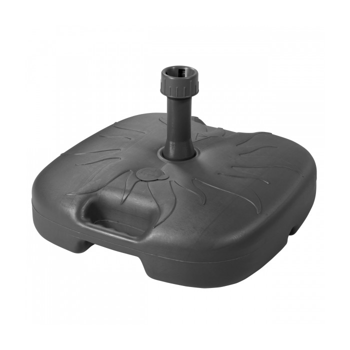 Sokl PVC plnitelný 20 l antracitový Vhodný pro slunečníky (plážové) do 180 cm. 20-litrová PVC plnicí základna je ideální pro menší slunečníky na balkoně, střešní terase a zahradě. Díky madlům je se soklem dobrá manipulace i když je naplněný. Pro optimální stabilitu doporučujeme plnit vodou, která se dá i dobře vylít, a díky tomu je přenosný (vhodný na cesty) a plážové slunečníky.