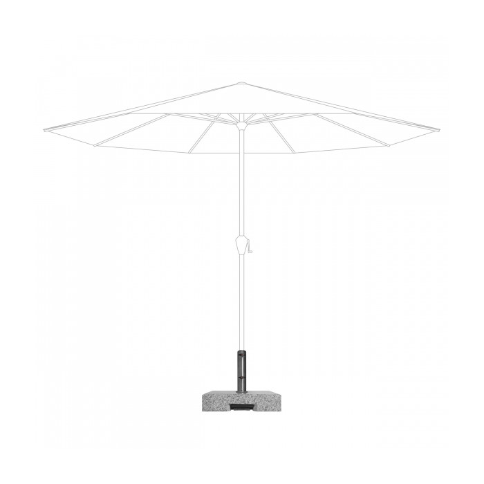 Díky své hmotnosti 50 kg je zajištěn bezpečná stabilita Vašeho slunečníku (vhodný pro středně velké středové slunečníky až do průměru 350 cm). Žula je velmi odolná vůči povětrnostním vlivům a proto může být využitá celý rok. Zdůrazňujeme, že žula je přírodní materiál, takže struktura a barva se mohou v průběhu času mírně měnit. DŮLEŽITÉ: Žula je přírodní produkt. Odchylky ve struktuře a barvě jsou vyhrazeny.