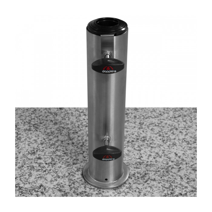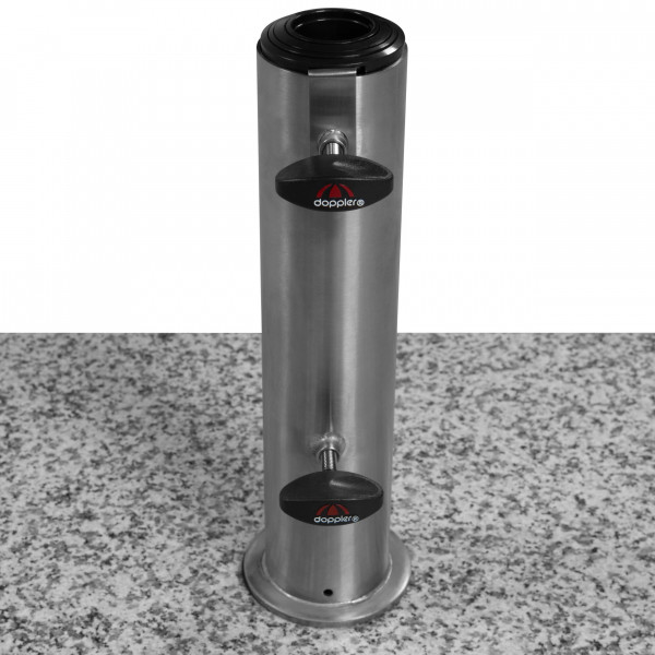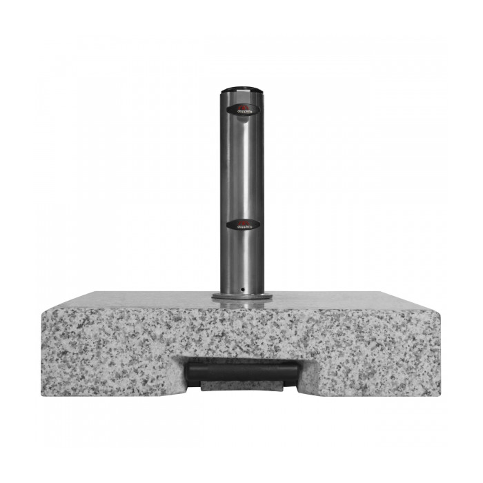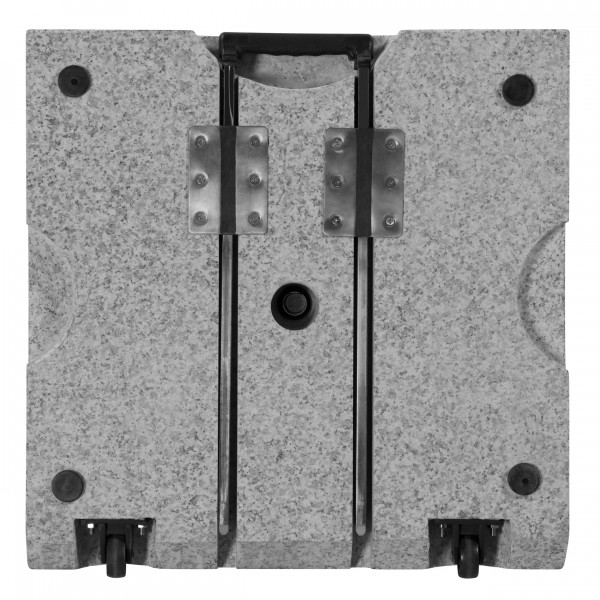 Vyroben ze světle šedé žuly s 2 koly a rozšiřitelnou trolejovou rukojetí. Vhodný pro snadnou přepravu. Nerezová tyč má několik redukčních kroužků a umožňuje použití průměrů deštníku do max. 60 mm (od 32-60mm). Slunečník se kotví do tyče (trubka z nerezové oceli) pomocí dvou pojistných šroubů. Díky své hmotnosti 70 kg je zajištěn bezpečná stabilita Vašeho slunečníku (vhodný pro středně velké středové slunečníky až do průměru 350...