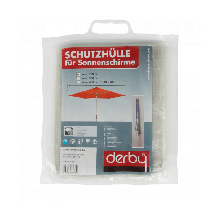 UV-stabilizovaná tkanina v bílé barvě s tkaničkami, 120 g/m2. Materiál / barva: 100% polyethylen / bílá - Pro slunečníky o velikosti max. 250 cm.Provedení bez zipu a bez tyčky. Praktické balení v tašce.
