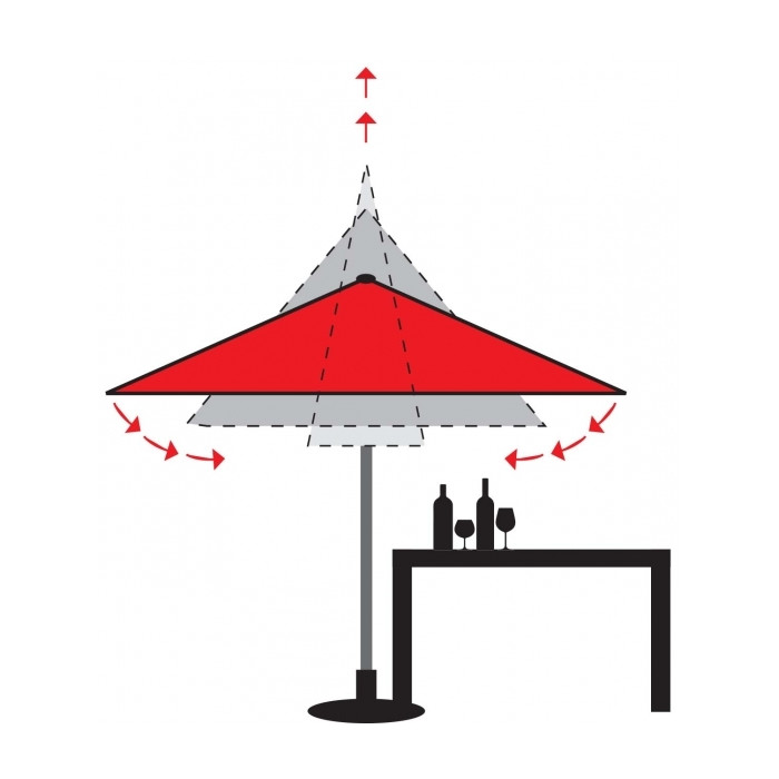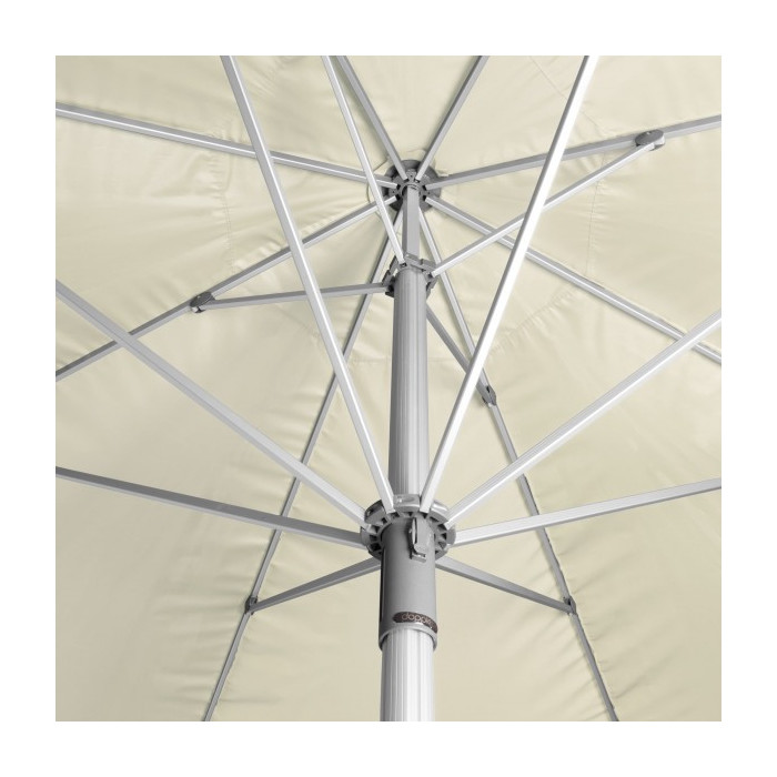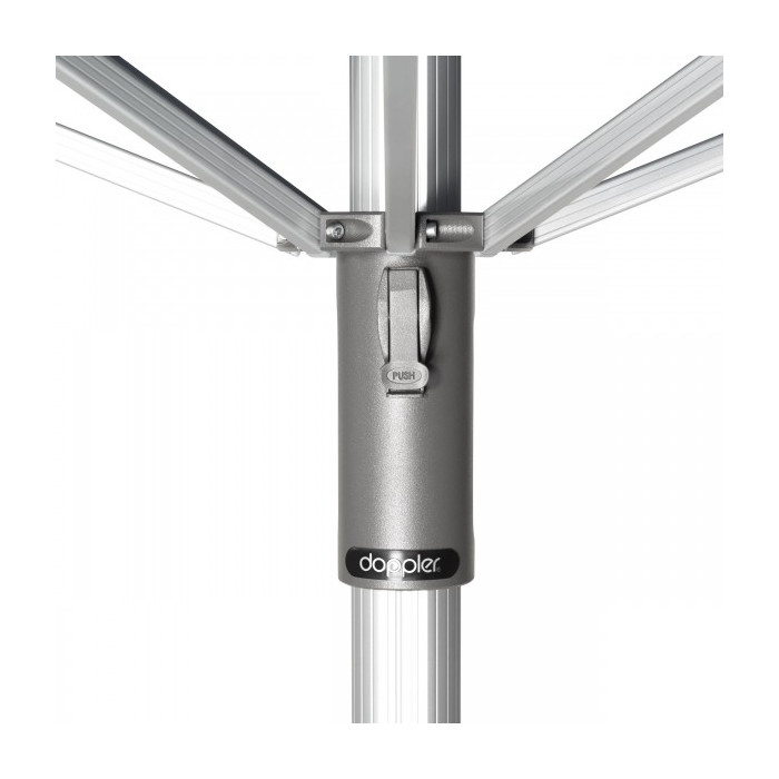 Profesionální masivní slunečník s pohodlným otvíráním pomocí Doppler teleskopického automatického systému, které umožňuje snadno otevřít slunečník jednou rukou. Robustní konstrukce slunečníku je vyrobena z profilovaného hliníku a všechny jeho spoje jsou šroubované.