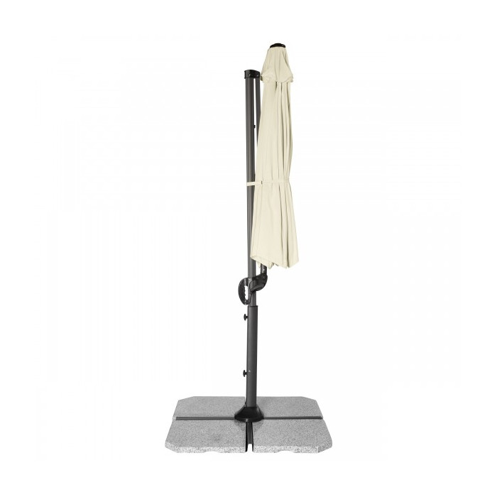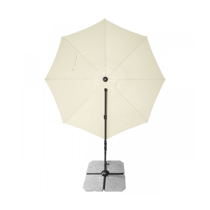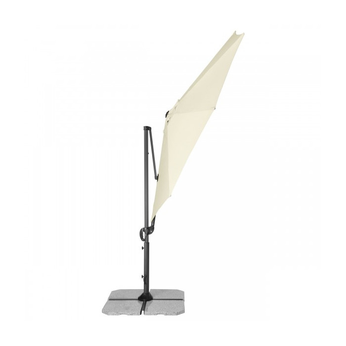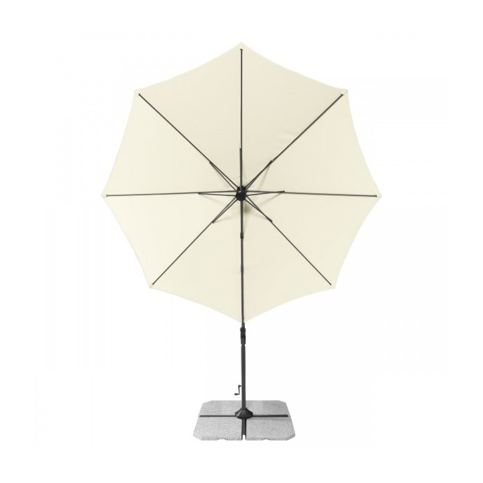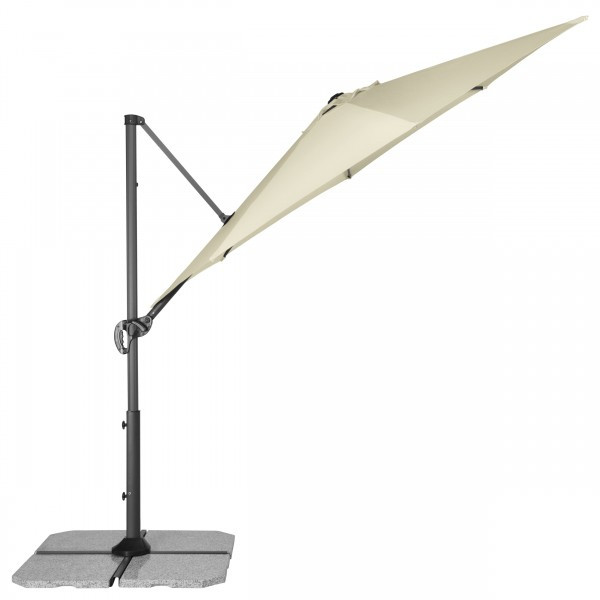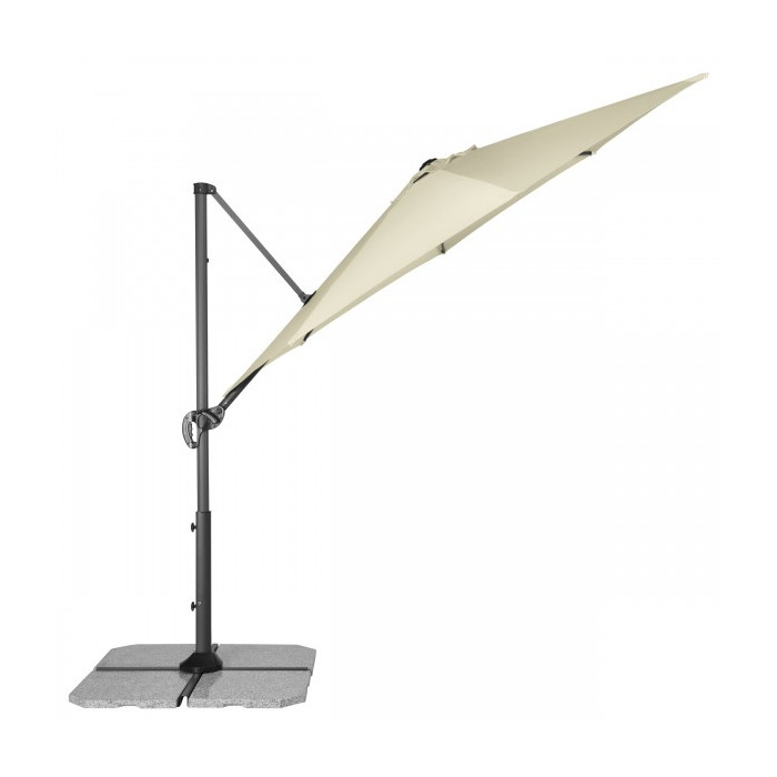 Ravenna Smart 300 cm Funkční slunečník Ravenna Smart 300 cm je vybavena klikovým mechanismem a je snadno ovladatelný. Potah slunečníku je vyroben z polyesterové tkaniny, je vodoodpudivý a má dobrou UV ochranu SPF 50+. Slunečník je otočný o 360 °, je možné ho naklápět v šesti pozicích a je dodáván se stojanem pro 4 ks desek 50x50x4 cm (bez desek 50x50x4 cm).