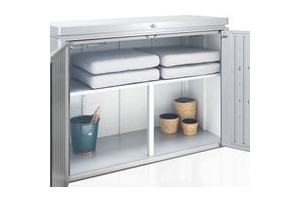 HighBoard, díky dvojitým dveřím a otevíracímu víku jsou aplikace pro HighBoard téměř neomezené: ať už jde o úložný prostor pro polštáře a zahradní vybavení nebo jako perfektní rozšíření vaší venkovní kuchyně - vše je chráněno před počasím a uklizeno. Jeho elegantní design byl vyvinut průmyslovými designéry a je okouzlující na vaší terase.