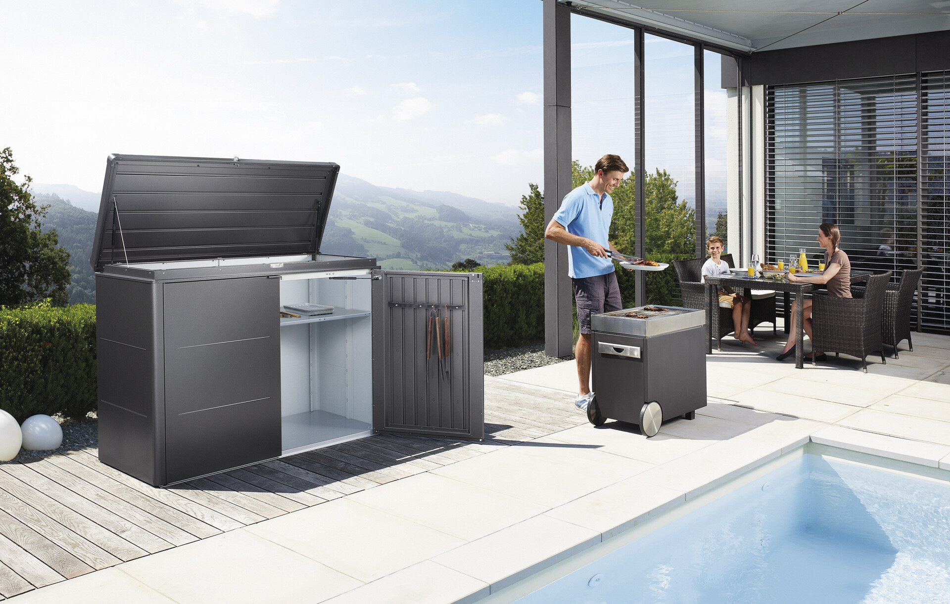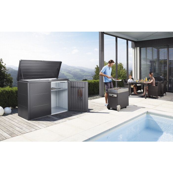HighBoard z naší nabídky zaujme ty kteří hledají prostorné řešení uskladnění třeba grilu nebo polstrů k zahradnímu nábytku. HighBoard se hodí k ratanovým objemným sedačkám. Na terase vypadá skvěle. Případně pro něco jiného.